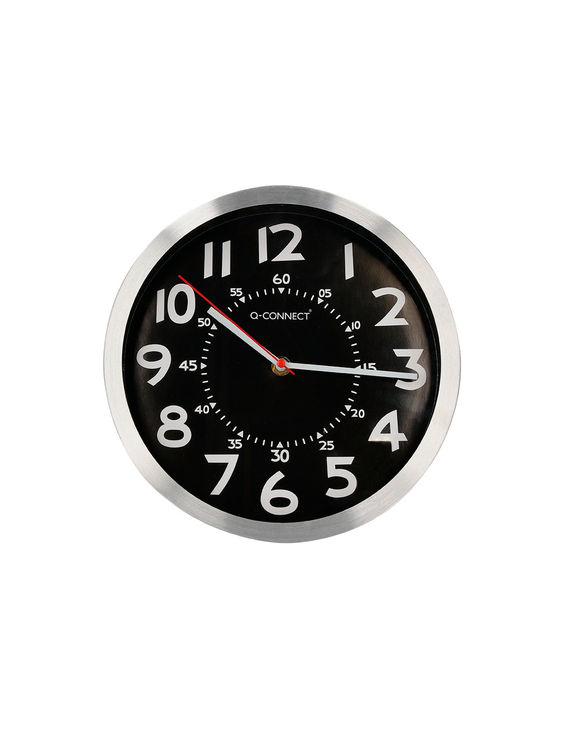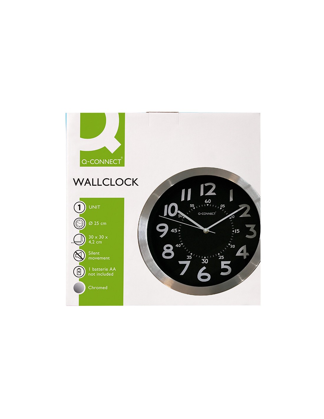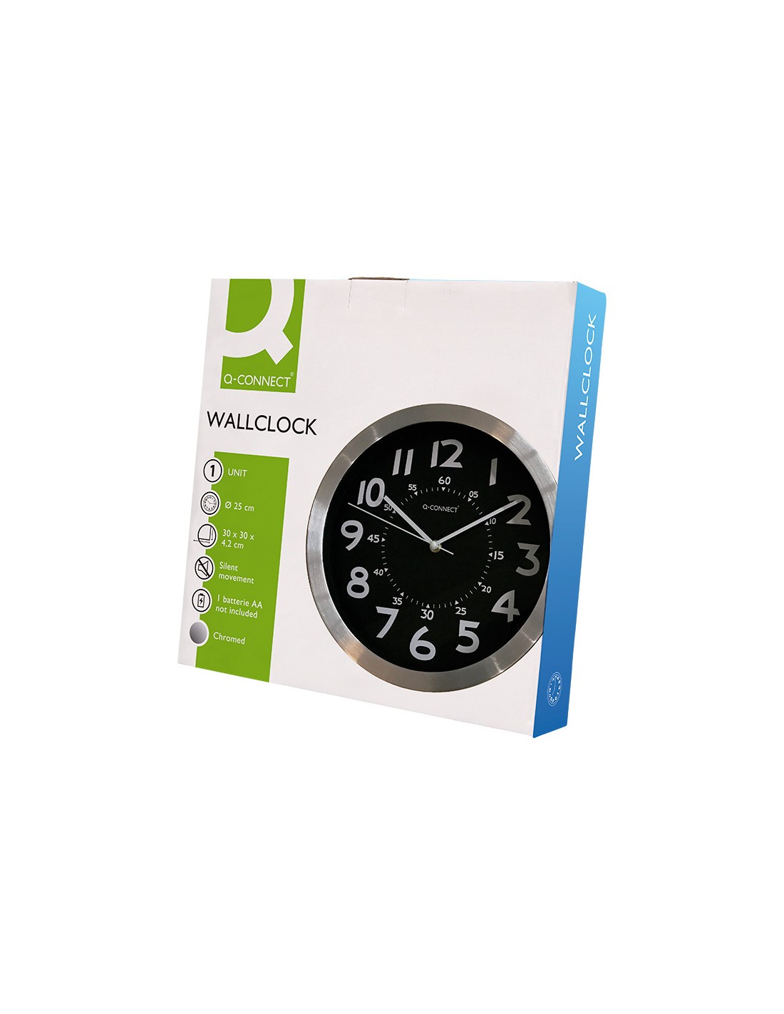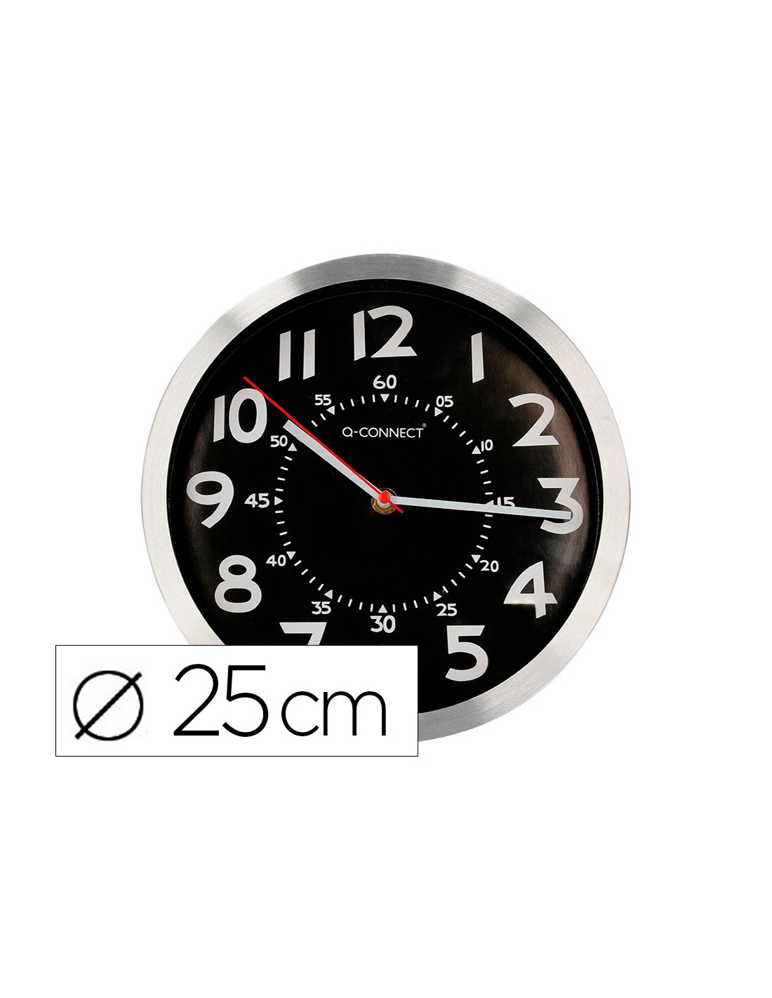 Reloj q-connect de pared metalico redondo 25 cm movimiento silencioso color negro con esfera cromado