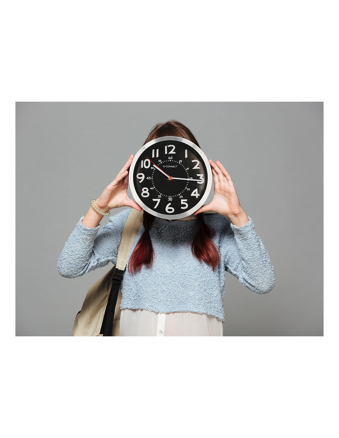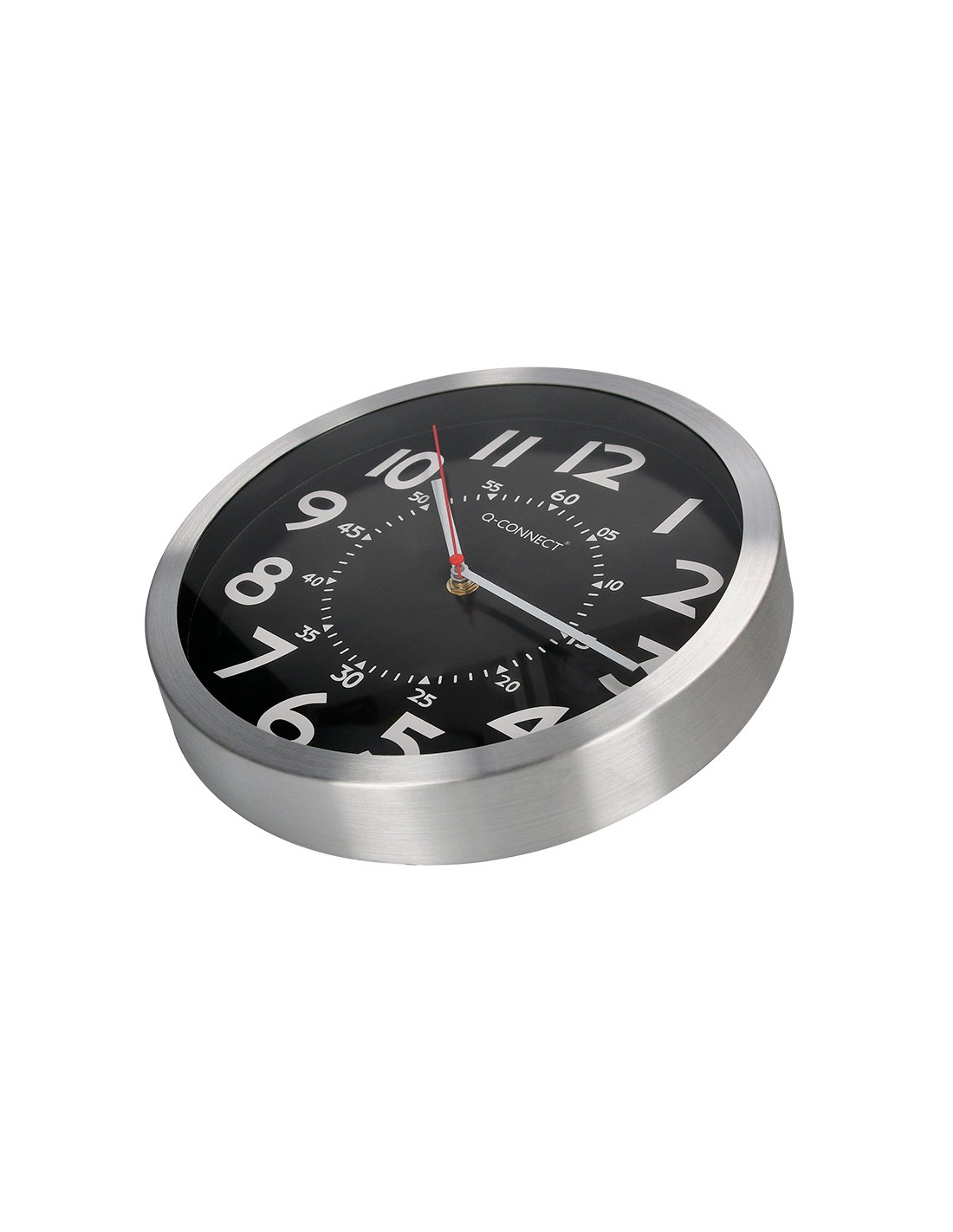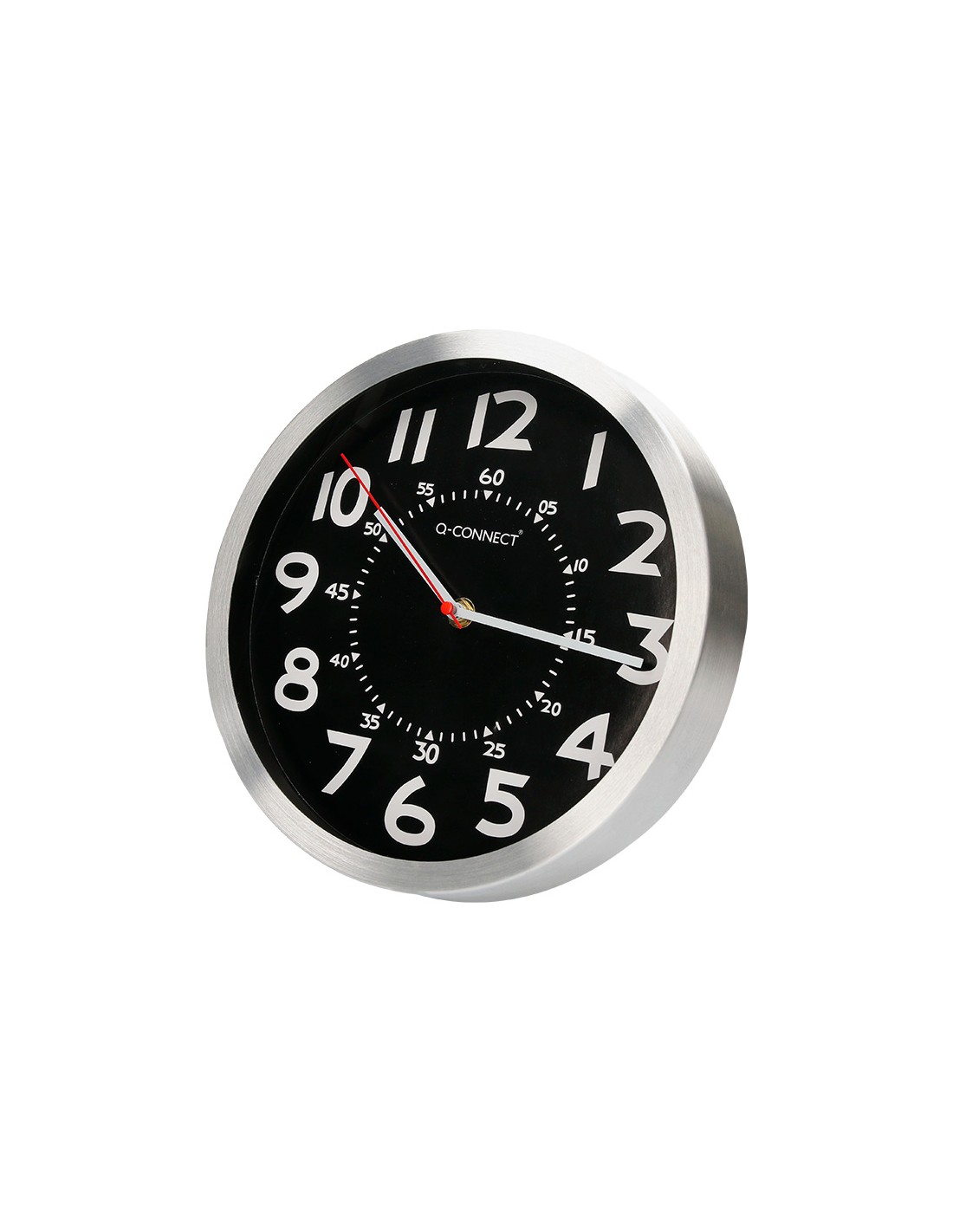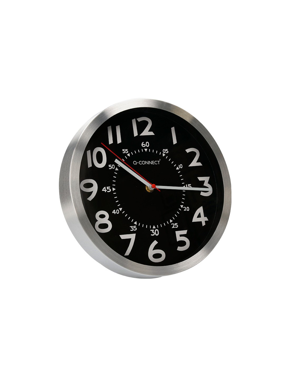 Reloj q-connect de pared metalico redondo 25 cm movimiento silencioso color negro con esfera cromado
