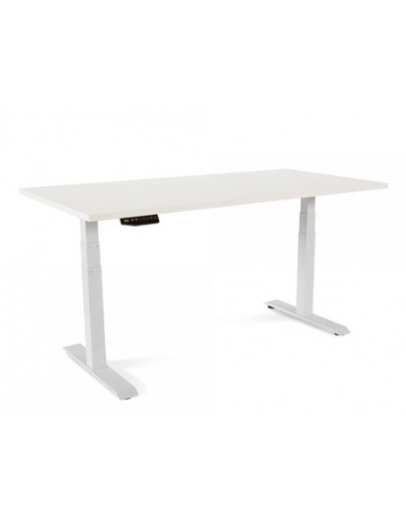Mesa rocada regulable en altura electricamente hasta 129 cm estructura de acero tablero 160 cm color blanco