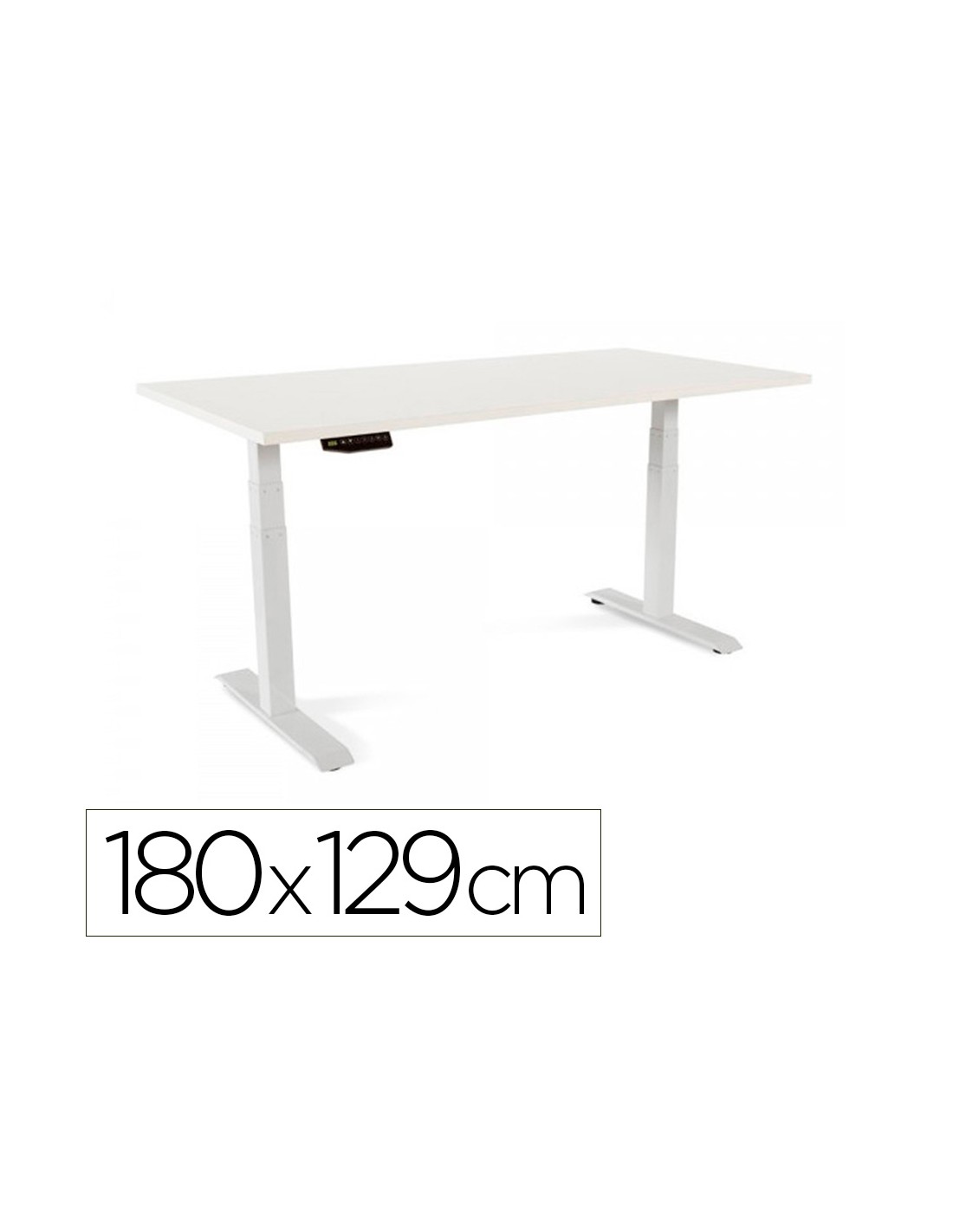 Mesa rocada regulable en altura electricamente hasta 129 cm estructura de acero tablero 180 cm color blanco
