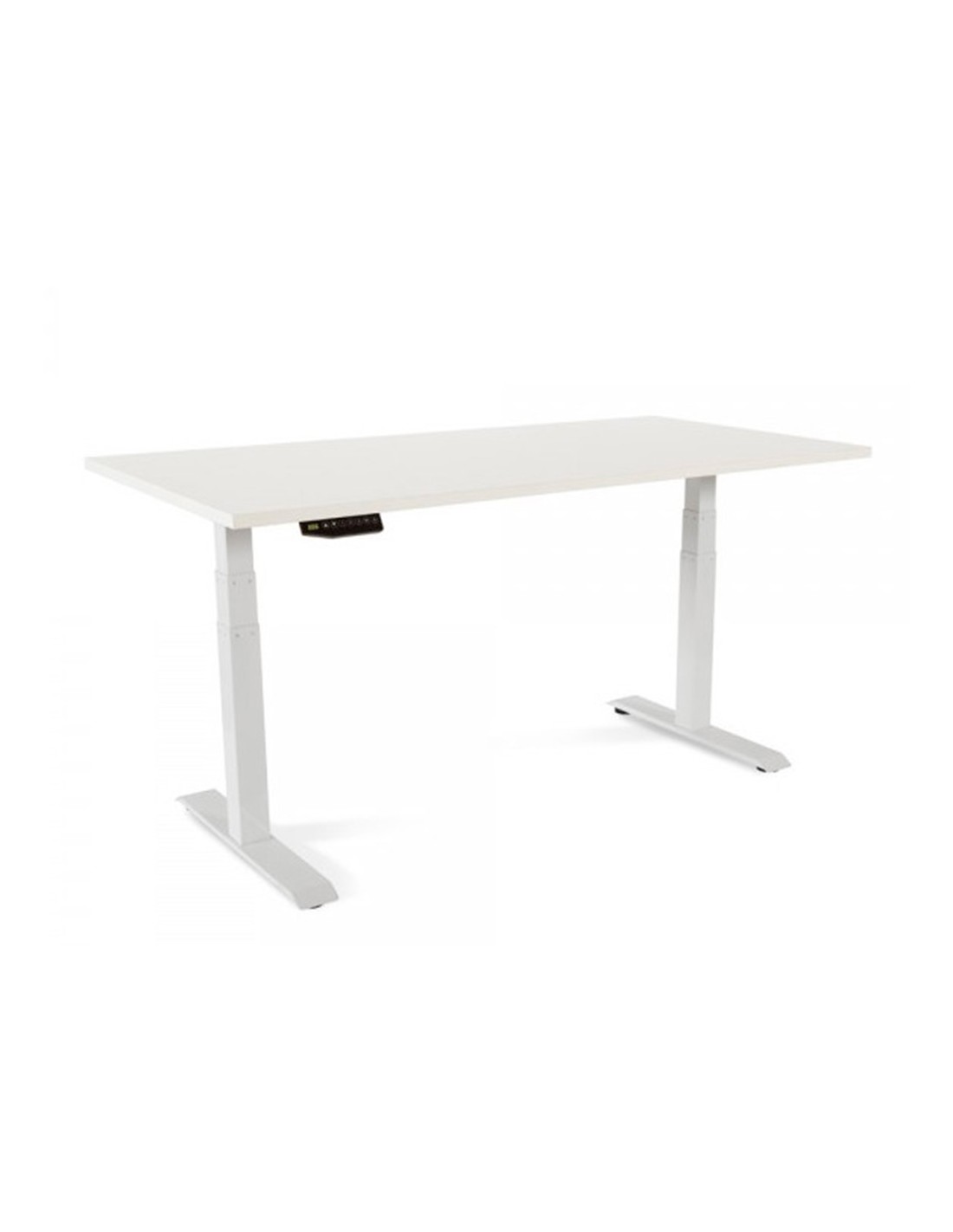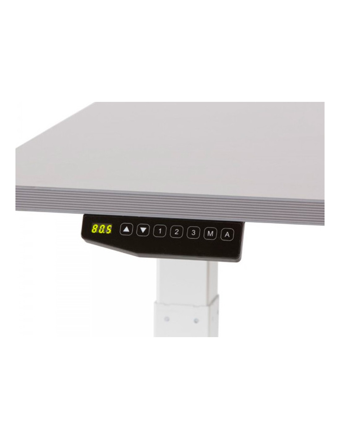 Mesa con sistema de regulación eléctrica en altura para cubrir las necesidades de trabajo más exigentes. Superficie de mesa con melamina de 25 mm de grosor con canto de PVC de 2 mm. Acabados del tablero disponibles en haya, gris, blanco y roble. Estructura realizada en tubo y chapa de acero acabado en epoxy RAL 9010, con columna a tres niveles regulable en altura (mínimo 620 mm - máximo 1260 mm) mediante dispositivo de regulación eléctrico, para conseguir la altura deseada y trabajar de una forma fácil y rápida. Incluye niveladores de regulación en altura de hasta 2 cm.
