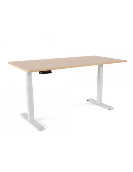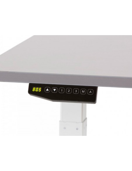 Mesa con sistema de regulación eléctrica en altura para cubrir las necesidades de trabajo más exigentes. Superficie de mesa con melamina de 25 mm de grosor con canto de PVC de 2 mm. Acabados del tablero disponibles en haya, gris, blanco y roble. Estructura realizada en tubo y chapa de acero acabado en epoxy RAL 9010, con columna a tres niveles regulable en altura (mínimo 620 mm - máximo 1260 mm) mediante dispositivo de regulación eléctrico, para conseguir la altura deseada y trabajar de una forma fácil y rápida. Incluye niveladores de regulación en altura de hasta 2 cm.