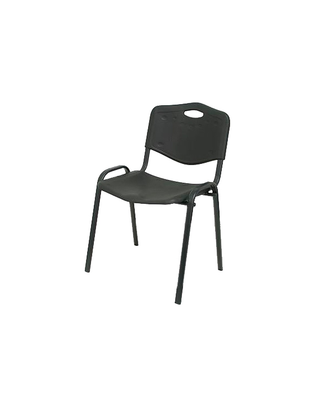 Apilable. Color negro. Respaldo PVC. Asiento PVC. Base metálica. Altura de la silla 81 cm. Altura del asiento 45 cm. Ancho del asiento 48 cm. Profundidad del asiento 48 cm. Altura del respaldo 36 cm. Brazos sin brazos. Horas de uso 5 horas. Peso de la silla / peso máximo soportado 4,20 kg / 100 kg.