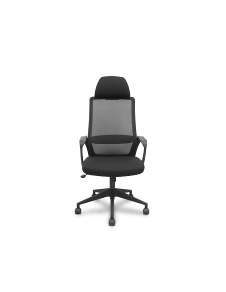 Silla de direccion pyc pro534 brazos fijos regulable en altura respaldo en malla negra y asiento tela negra