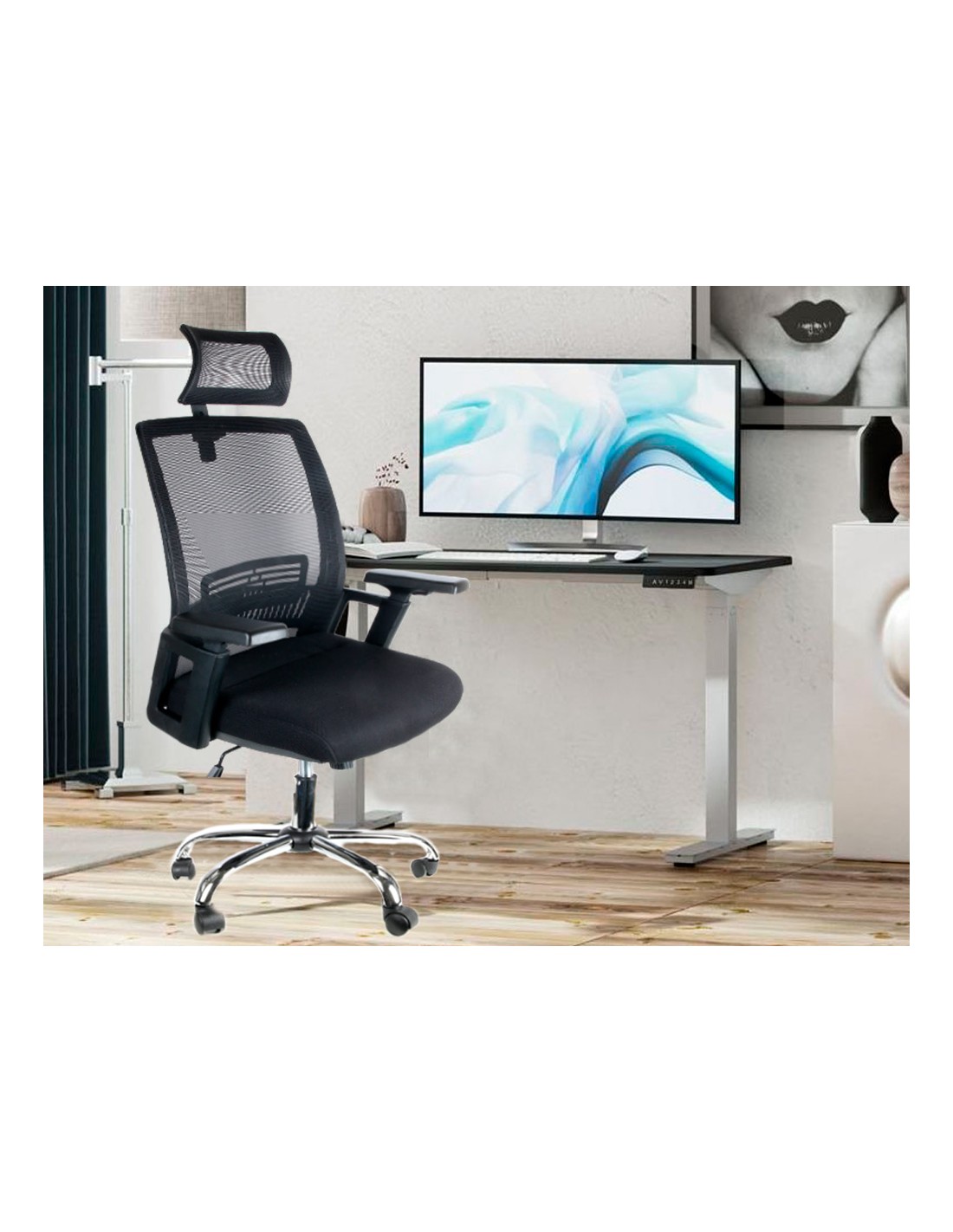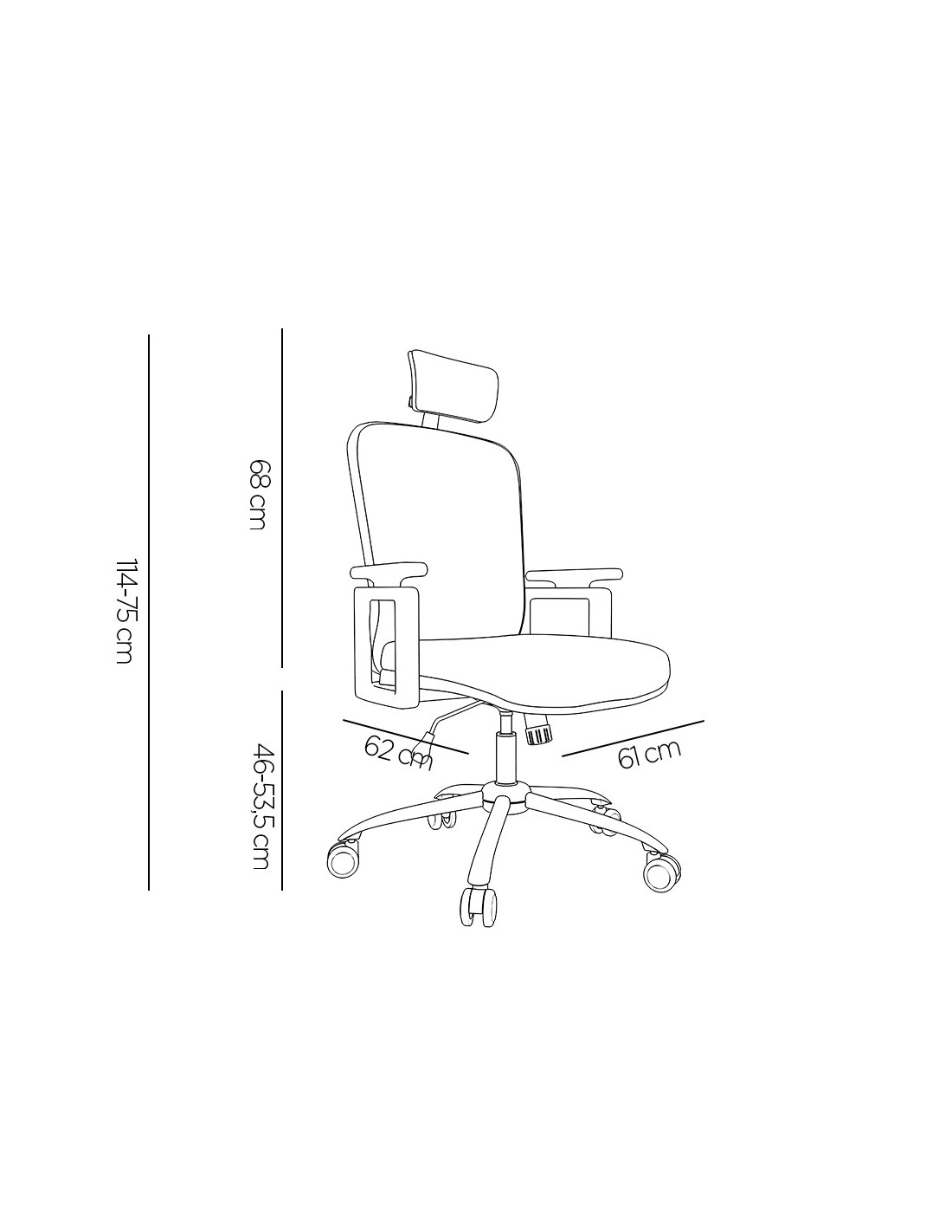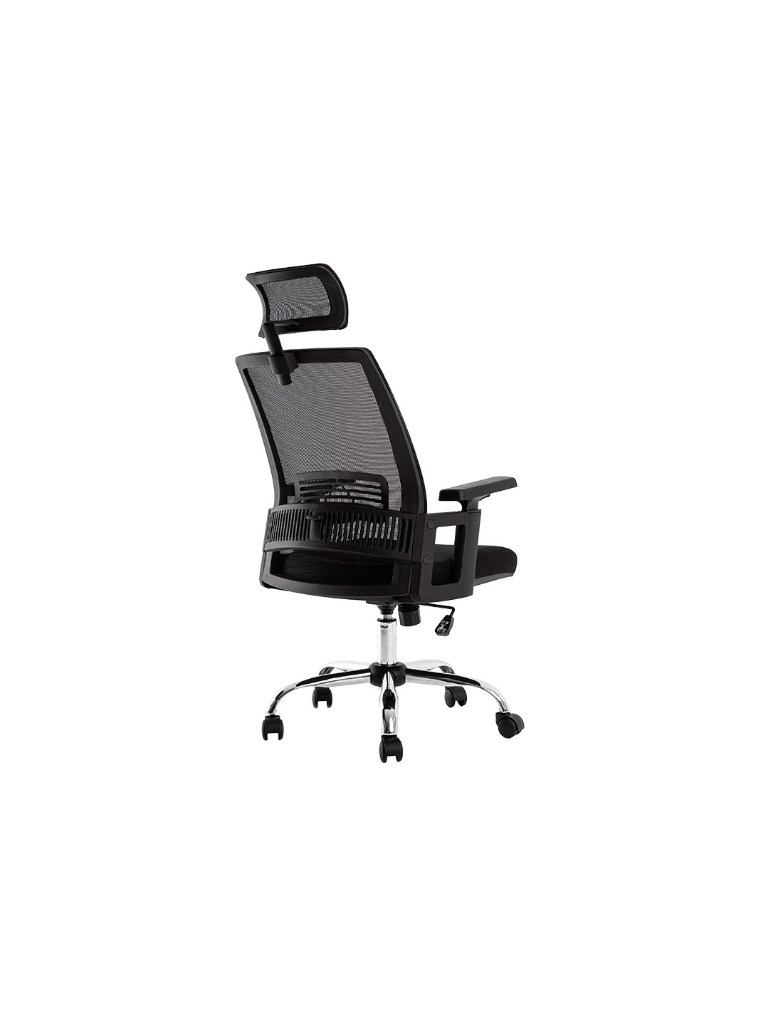 Silla ergonómica giratoria 360°. Asiento y respaldo En malla y tejido de color negro. Con apoyo lumbar y reposacabezas. Pistón de gas de 7 cm. Base metálica resistente. Altura de la silla 114 + 7,5 cm. Altura del respaldo 68 cm. Altura del asiento 46-53,5 cm. Ancho del asiento 61 cm. Profundidad del asiento 62 cm. Brazos ajustables en altura, de polipropileno. Ruedas nylon de 6 cm Ø. Horas de uso 8 horas. Peso de la silla / peso máximo soportado 17 kg / 130 kg.