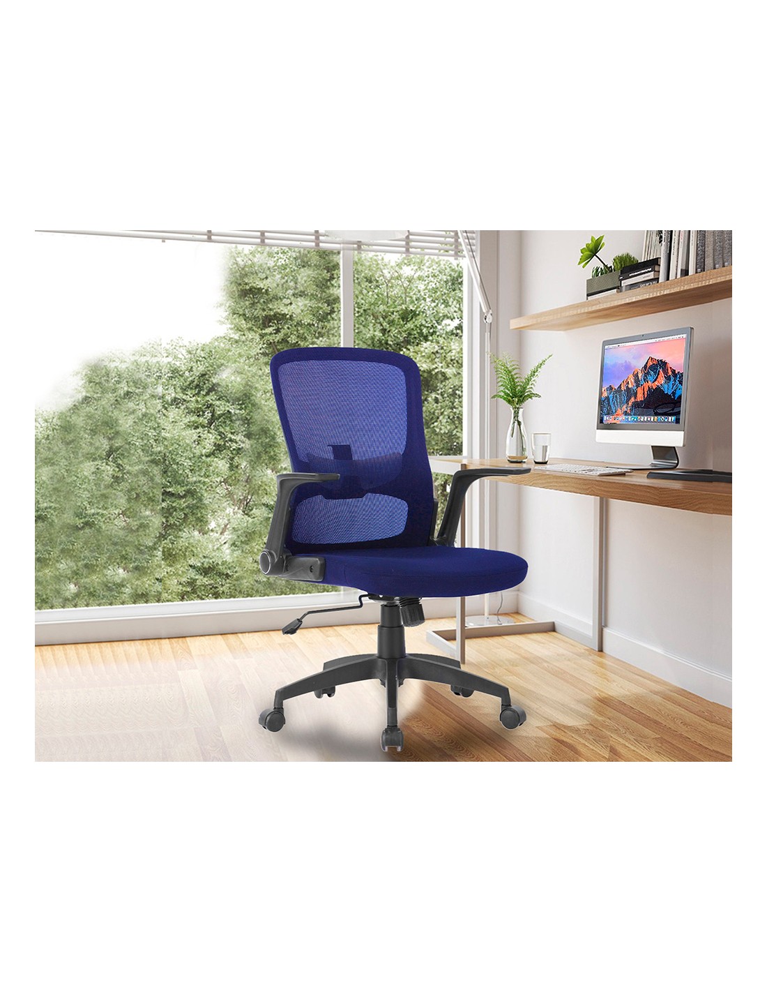 Silla giratoria 360° regulable en altura. Diseño de gran comodidad. Asiento y respaldo asiento tapizado en tela y respaldo en malla con apoyo lumbar. Pistón de gas para regulación de altura. Base plástico muy resistente con 5 ruedas. Altura de la silla 91 + 7,5 cm. Altura del respaldo 48,5 cm. Altura del asiento 42,5-50 cm. Ancho del asiento 61 cm. Profundidad del asiento 55 cm. Brazos polipropileno. Reclinables. Ruedas de nylon. Nylon 6 cm Ø. Horas de uso 8 horas. Peso de la silla / peso máximo soportado 9,3 kg / 130 kg.