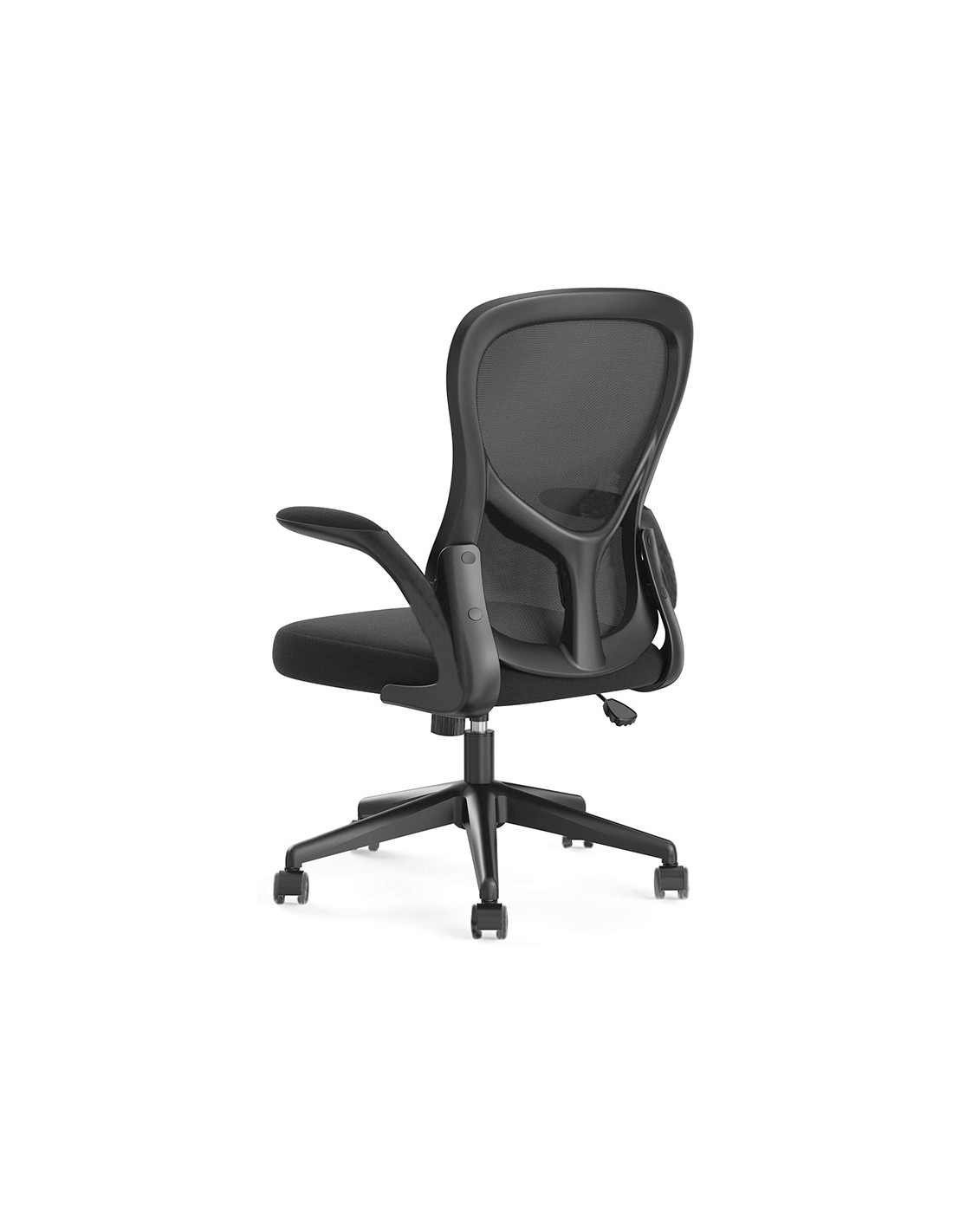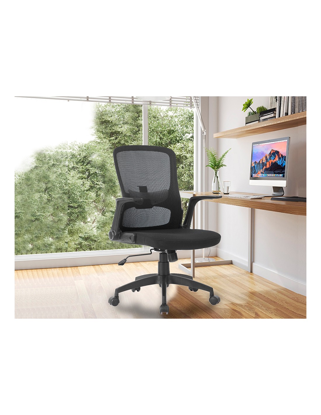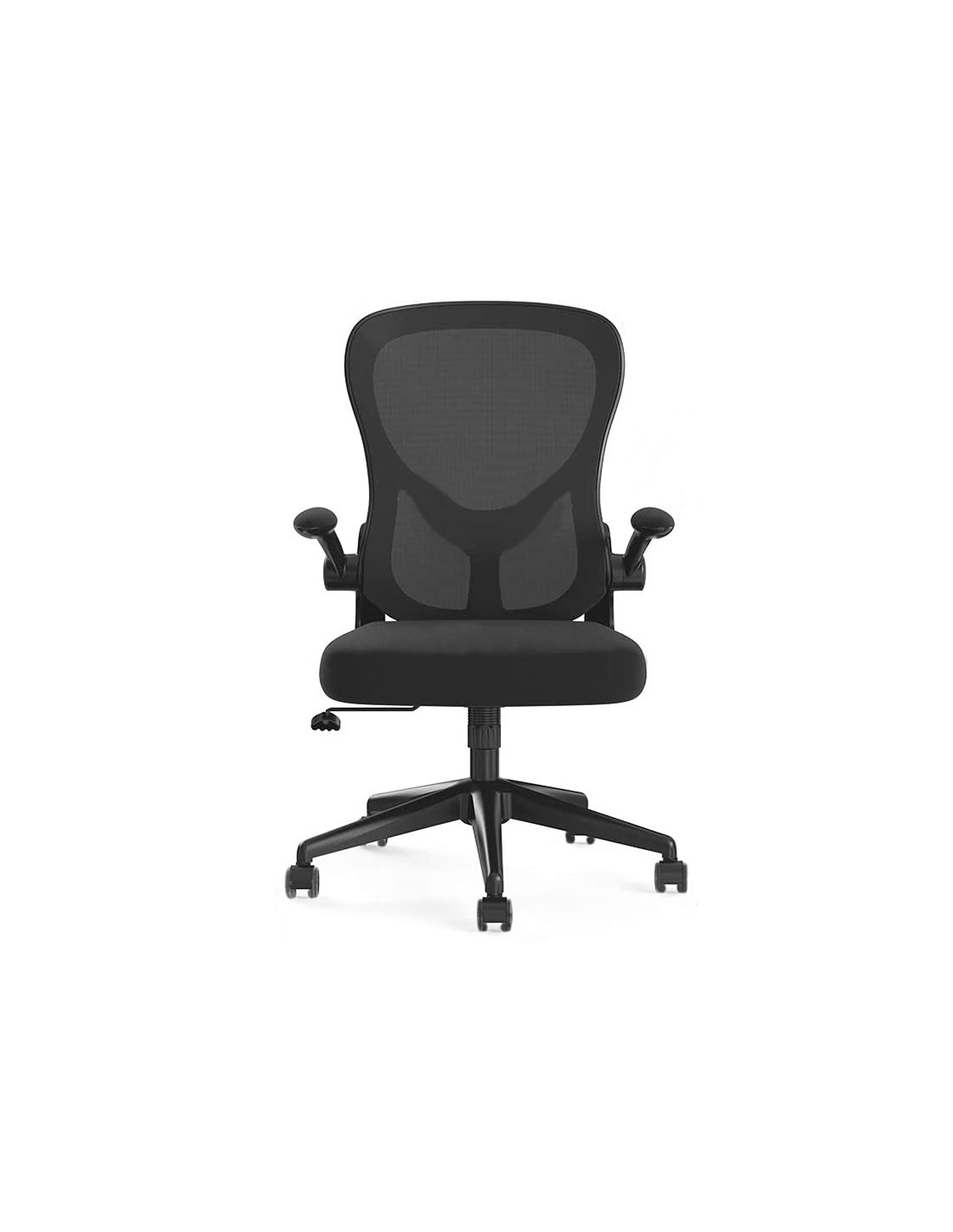 Silla giratoria 360° regulable en altura. Diseño de gran comodidad. Asiento y respaldo asiento tapizado en tela y respaldo en malla con apoyo lumbar. Pistón de gas para regulación de altura. Base plástico muy resistente con 5 ruedas. Altura de la silla 91 + 7,5 cm. Altura del respaldo 48,5 cm. Altura del asiento 42,5-50 cm. Ancho del asiento 61 cm. Profundidad del asiento 55 cm. Brazos polipropileno. Reclinables. Ruedas de nylon. Nylon 6 cm Ø. Horas de uso 8 horas. Peso de la silla / peso máximo soportado 9,3 kg / 130 kg.