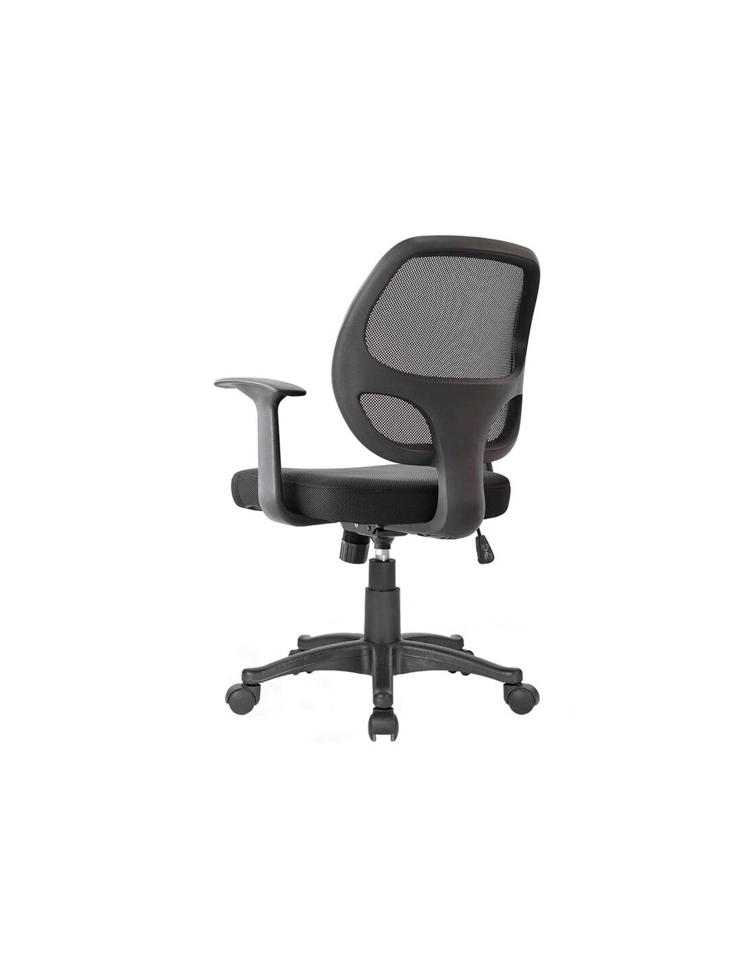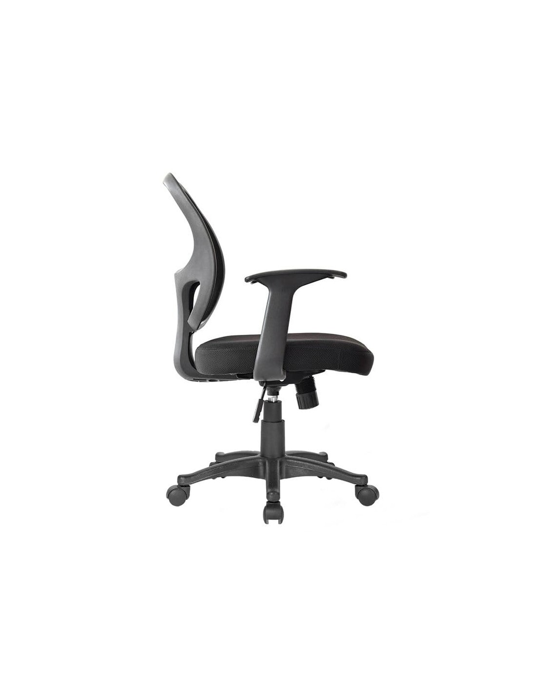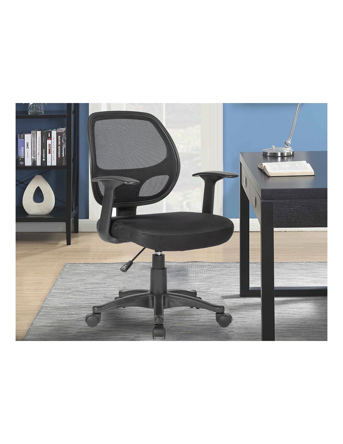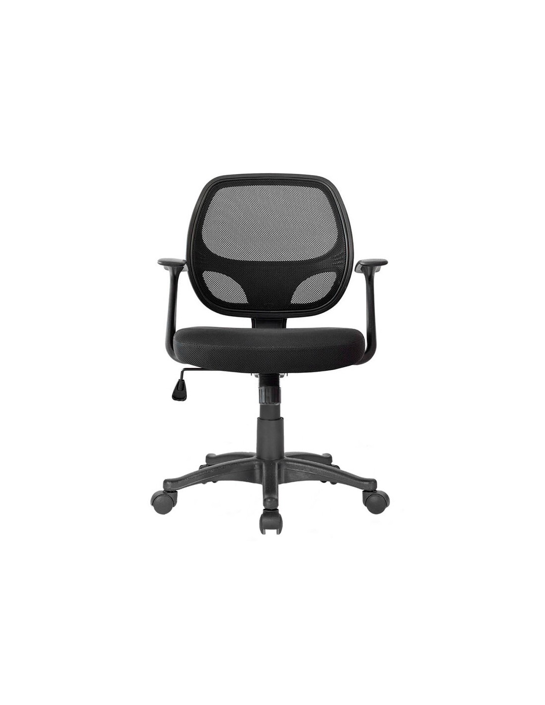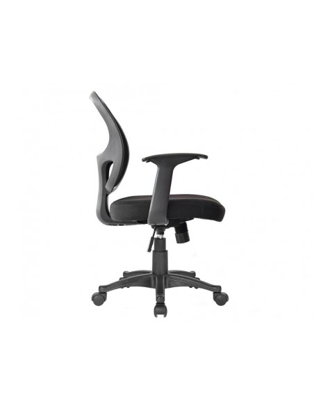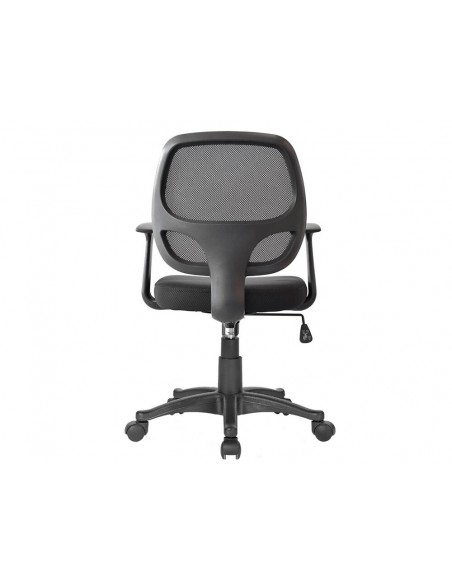 Silla giratoria con mecanismo regulable en altura. Asiento y respaldo tapizados en malla. Pistón cilindro de gas para regulación de altura. Base nylon negro. Altura de la silla 87 + 12 cm. Altura del respaldo 46 cm. Altura del asiento 44-56 cm. Ancho del asiento 46 cm. Profundidad del asiento 59 cm. Brazos fijos en polipropileno negro. Ruedas nylon. 6 cm Ø. Horas de uso 5 horas. Peso de la silla / peso máximo soportado 9 kg / 120 kg.