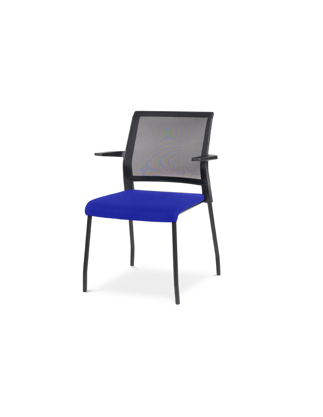 Silla confidente de oficina con el asiento tapizado con tela ignífuga sobre interior de espuma inyectada y el respaldo realizado en malla. Estructura metálica reforzada pintada en epoxy color negro. Brazos de serie. Admiteruedas. Altura de la silla 88,5 cm. Altura del respaldo 43 cm. Altura d el asiento 45,5 cm. Ancho del asiento 47,5 cm. Profundidad del asiento 43 cm. Peso máximo soportado 125 kg. Certificado UNE 1335 -1/ -2.