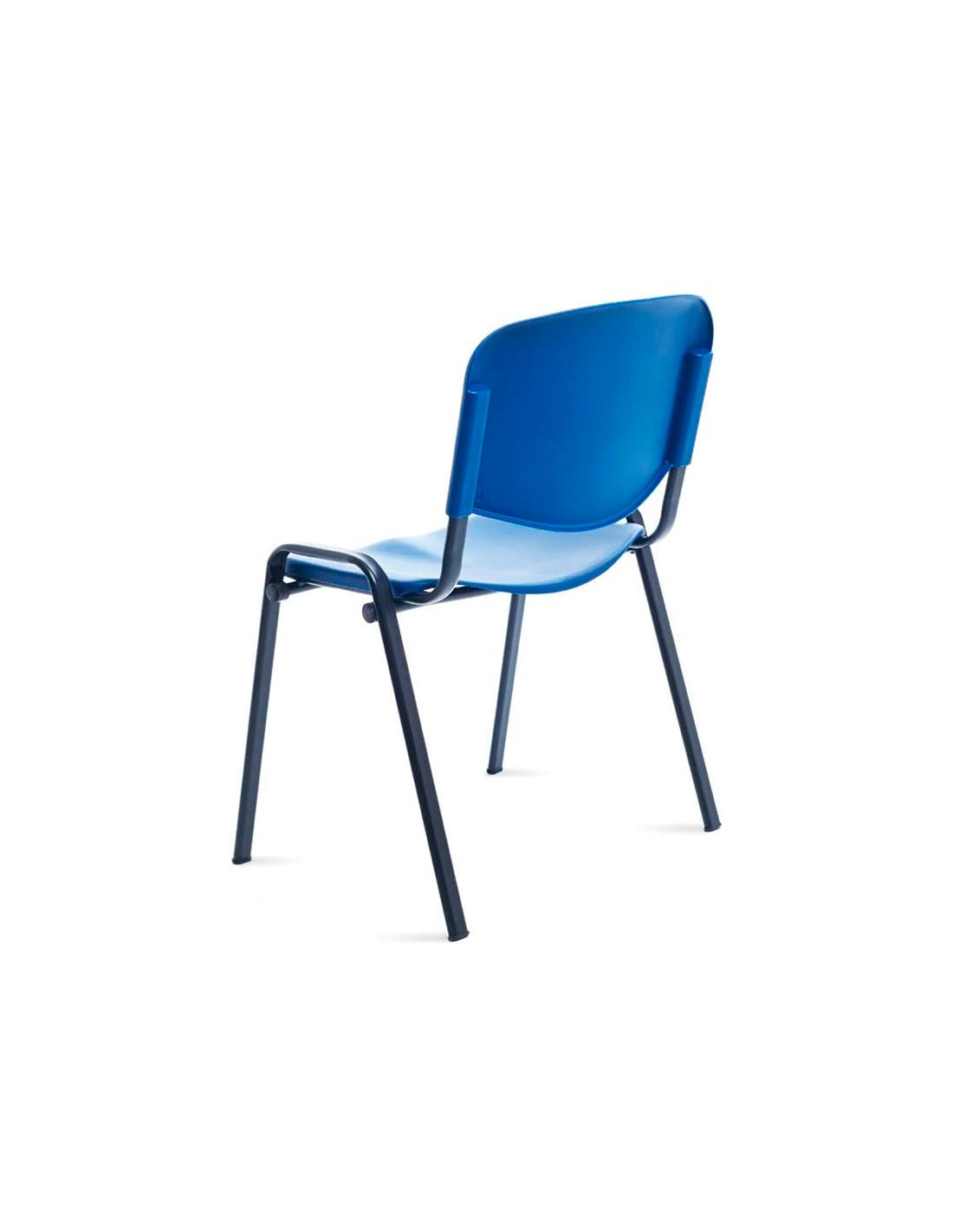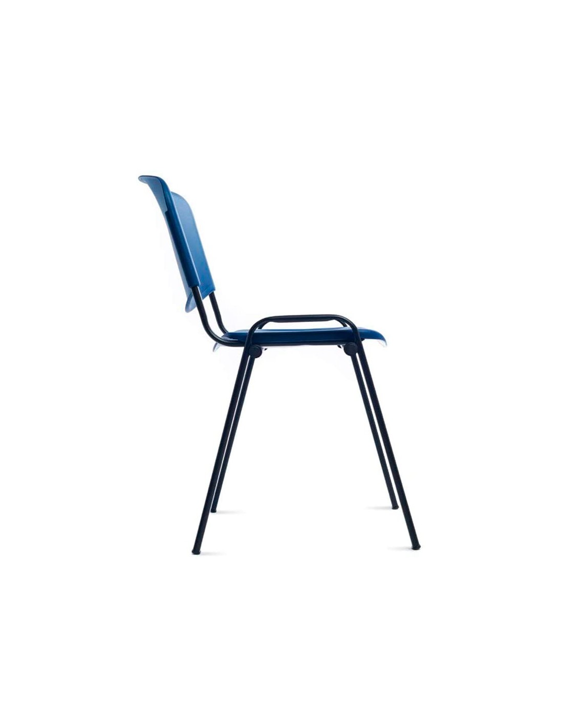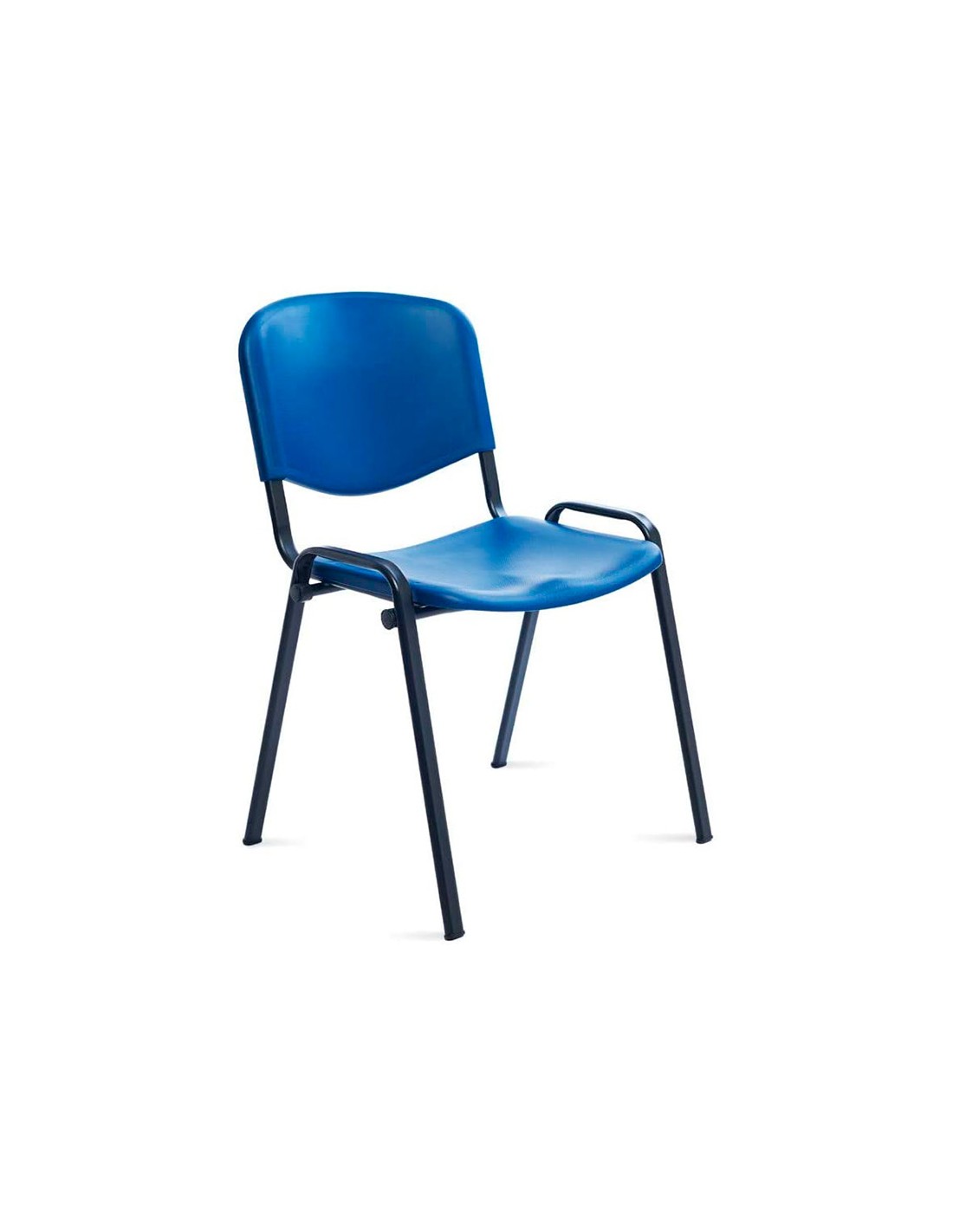 Silla apilable. Respaldo y asiento polimérico técnico. Colores azul y negro. Base estructura tubular metálica reforzada pintada en epoxy color negro. Altura de la silla 81 cm. Altura del asiento 48 cm. Ancho del asiento 57 cm. Profundidad del asiento 41 cm. Altura del respaldo 40 cm. Horas de uso 5 horas. Peso de la silla / peso máximo soportado 5,2 kg / 100 kg.Certificado UNE 16139.