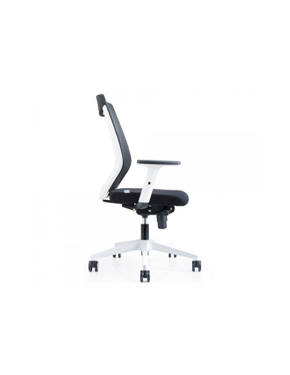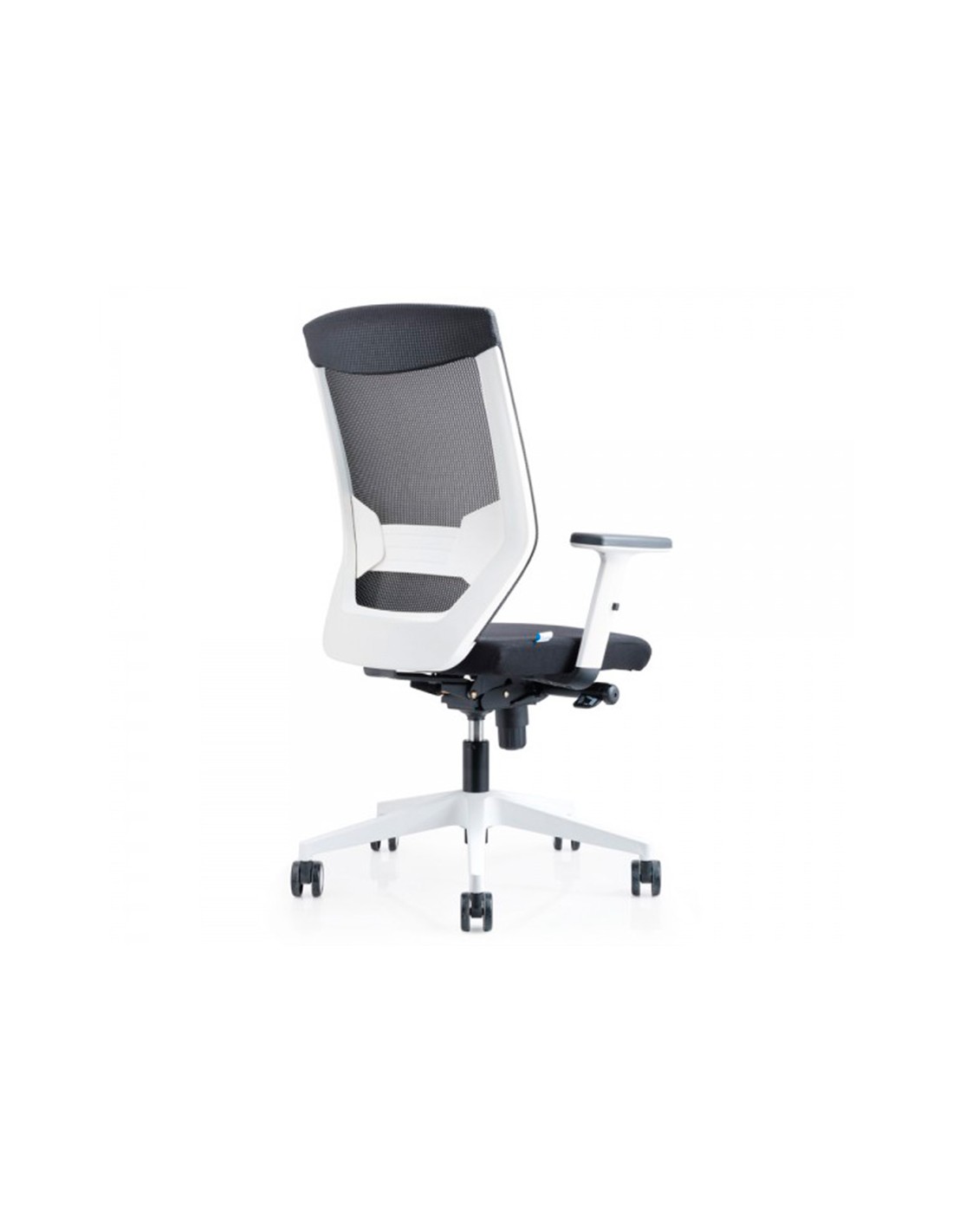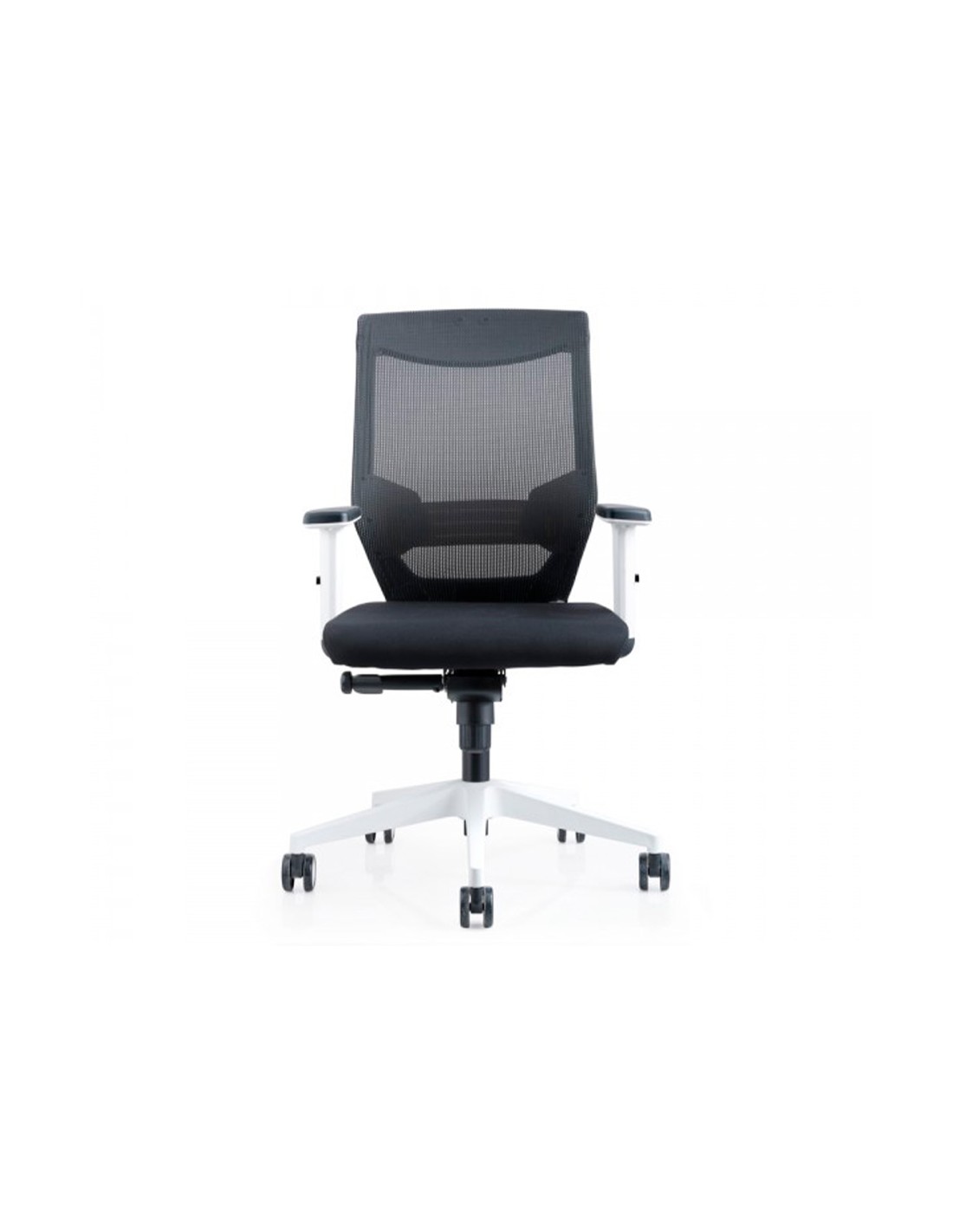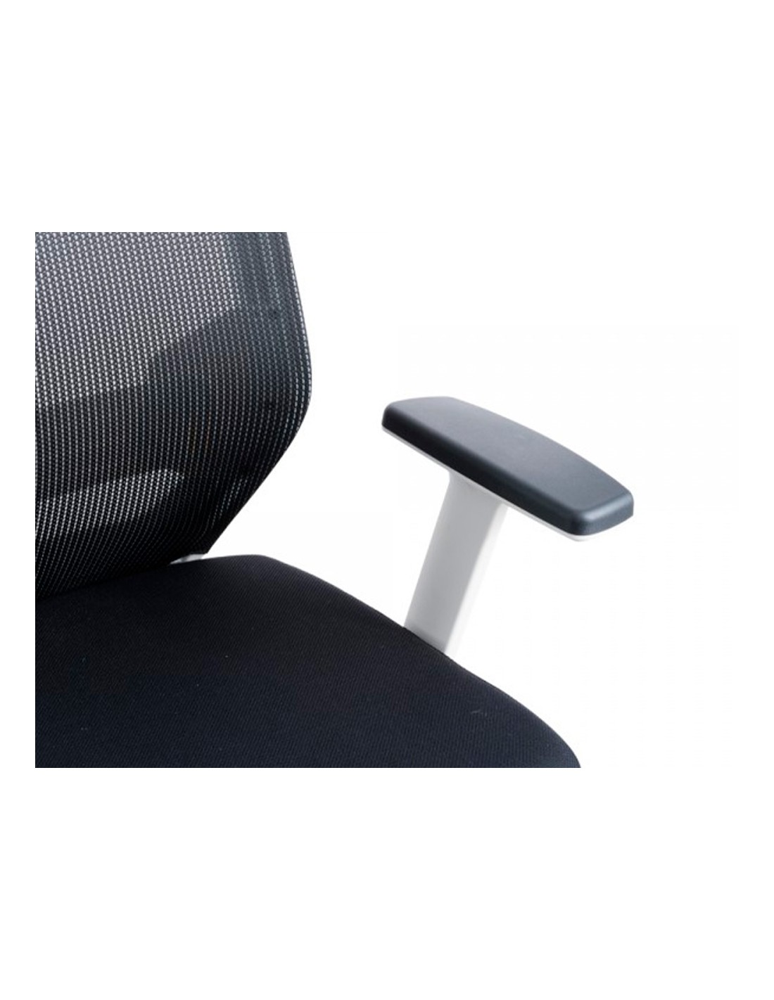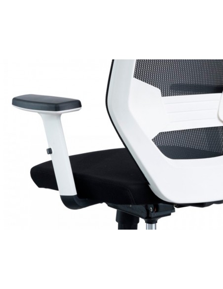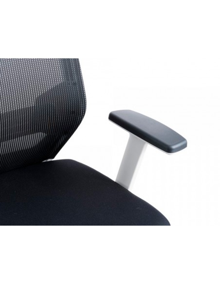 Silla rocada de oficina con brazos regulables y respaldo malla negro tapizada en tela ignifuga negro color blanco