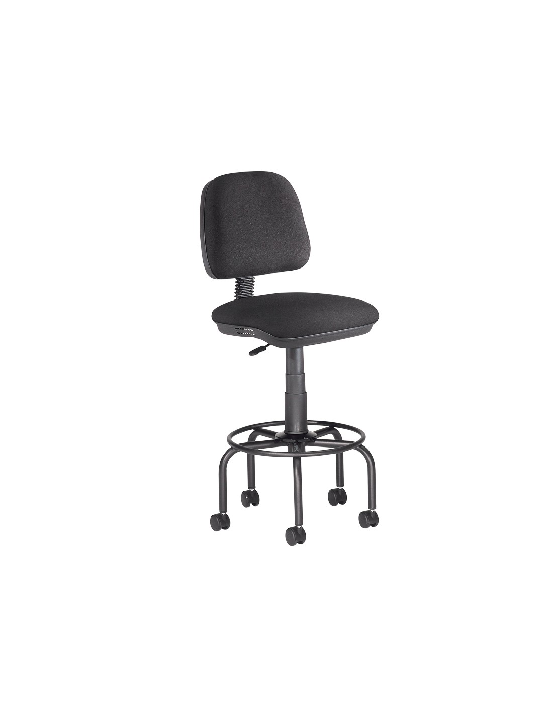 Taburete con respaldo rocada para mesa de dibujo negro regulable en altura hasta 725 mm tela ignifuga