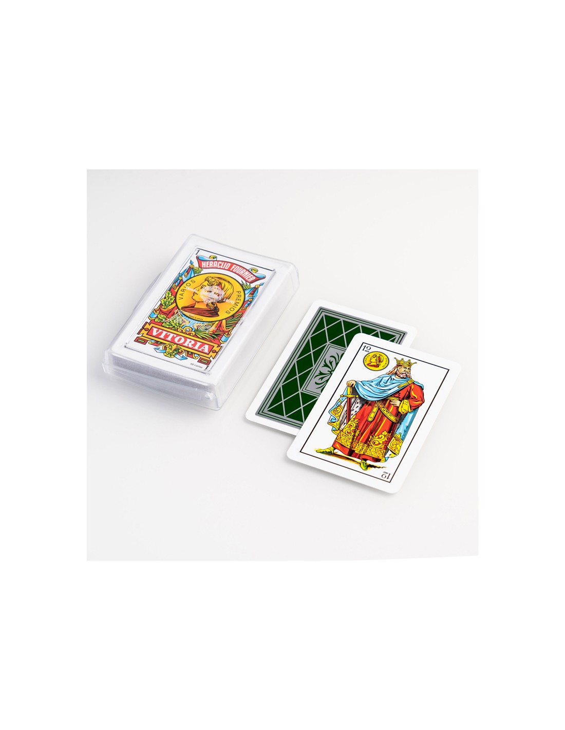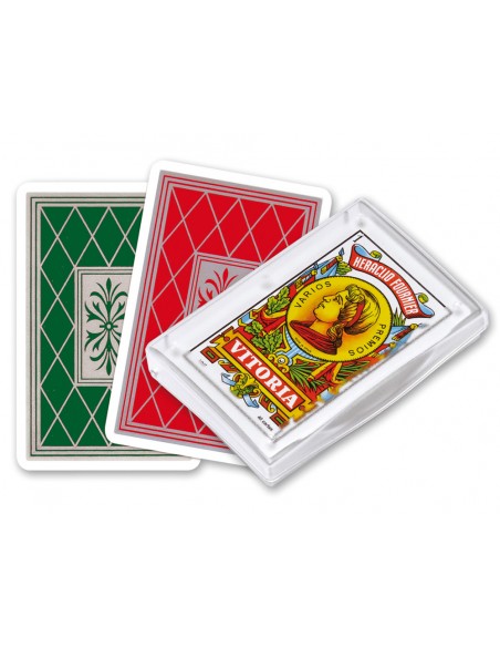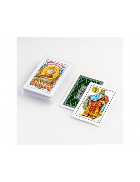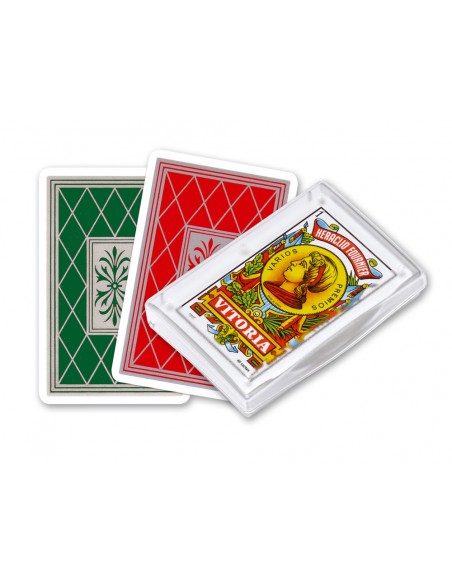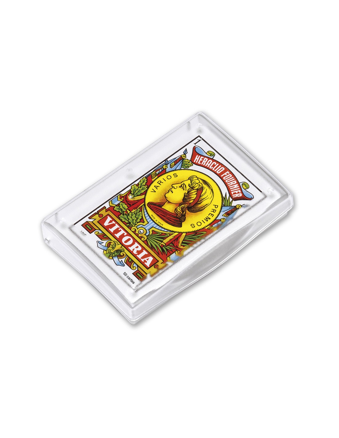 En estuche de plástico. Cartas de cartón de 300 g/m². Medidas 61,5 x 95 mm.