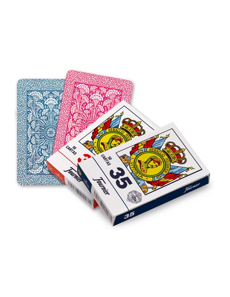 Baraja de 50 cartas. Cartas de cartón de 300 g/m². Medidas 61,5 x 95 mm.