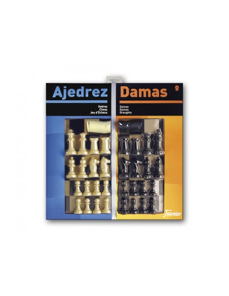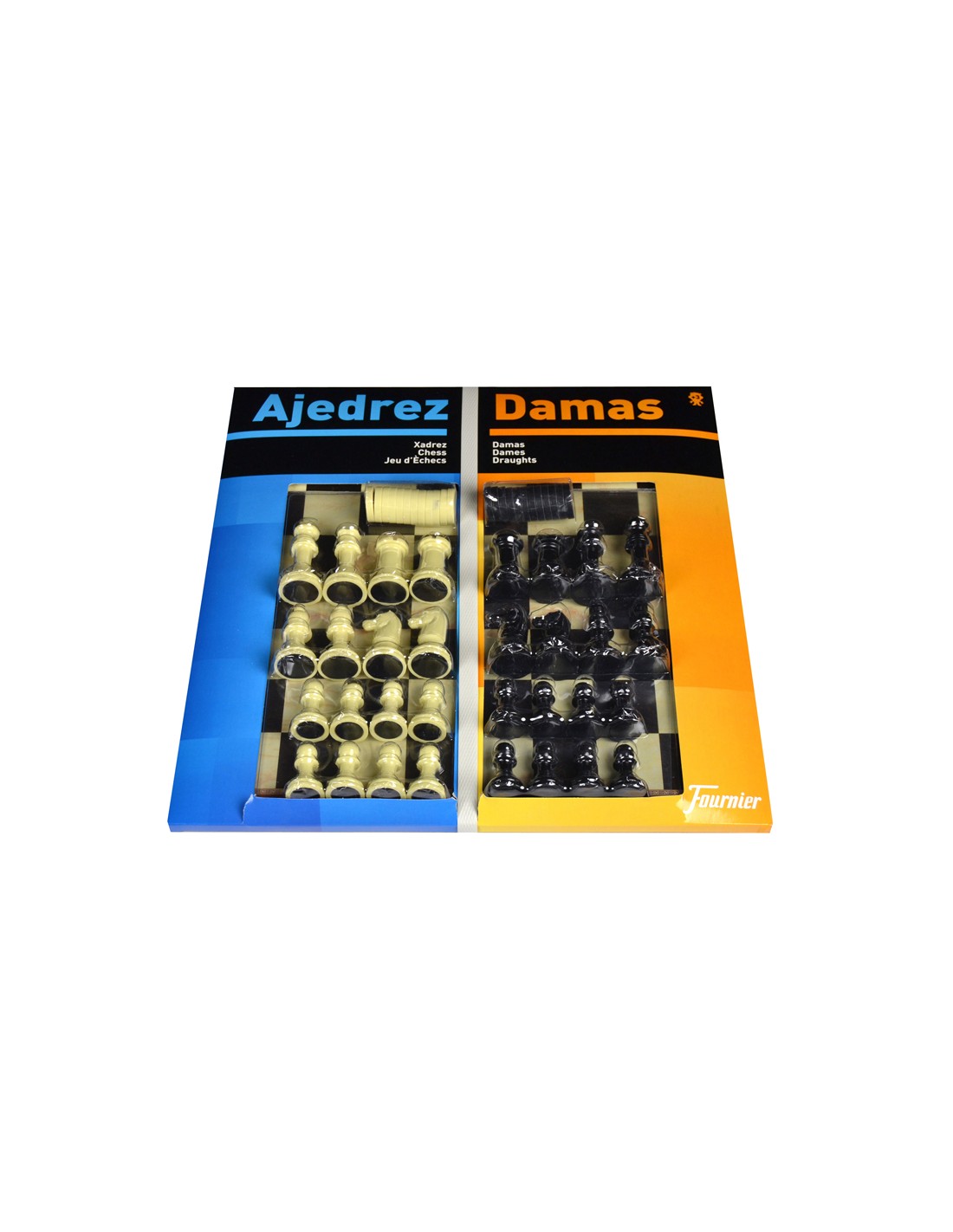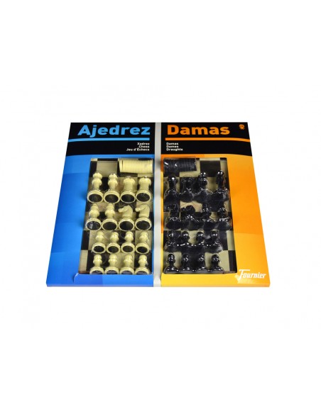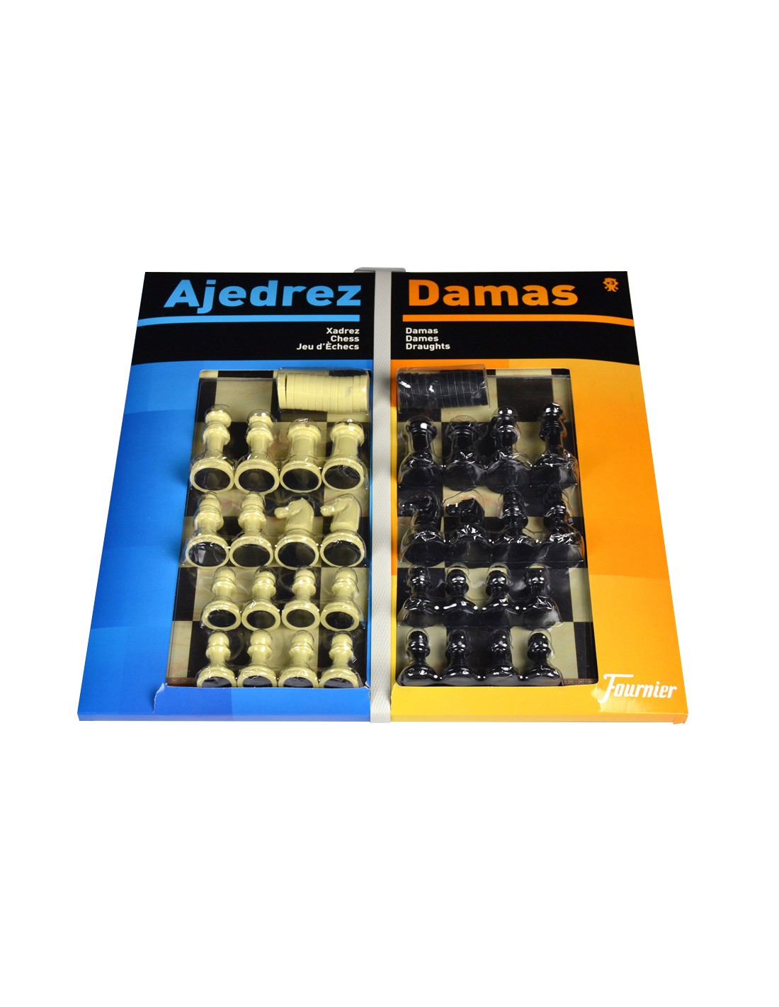 Contiene tablero, fichas de ajedrez, fichas de damas. Medidas 400 x 400 mm.