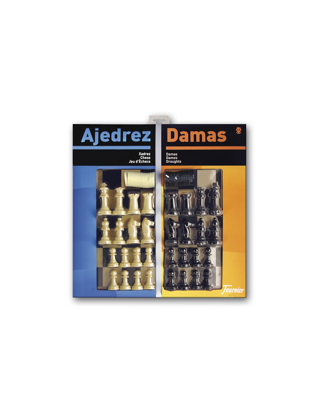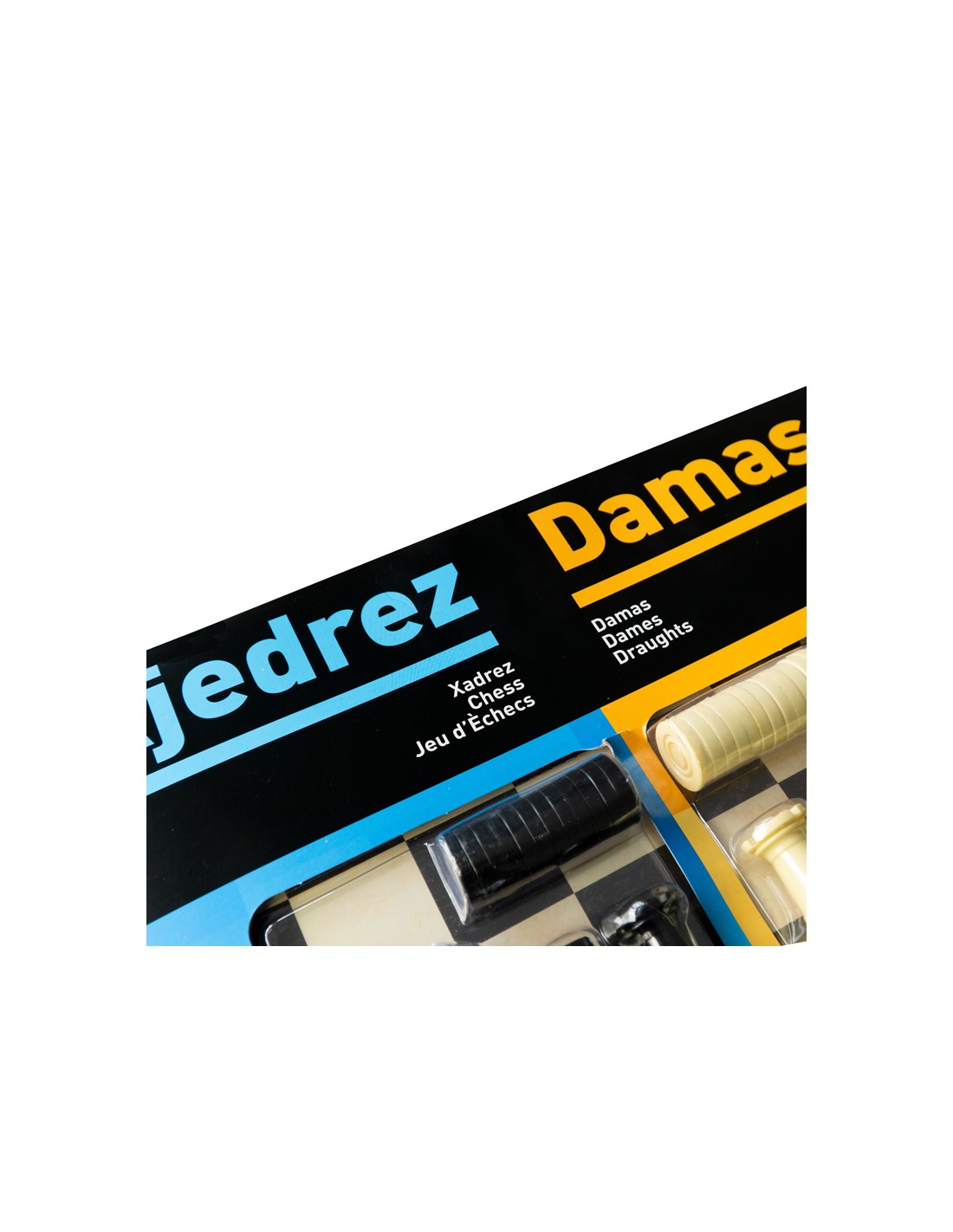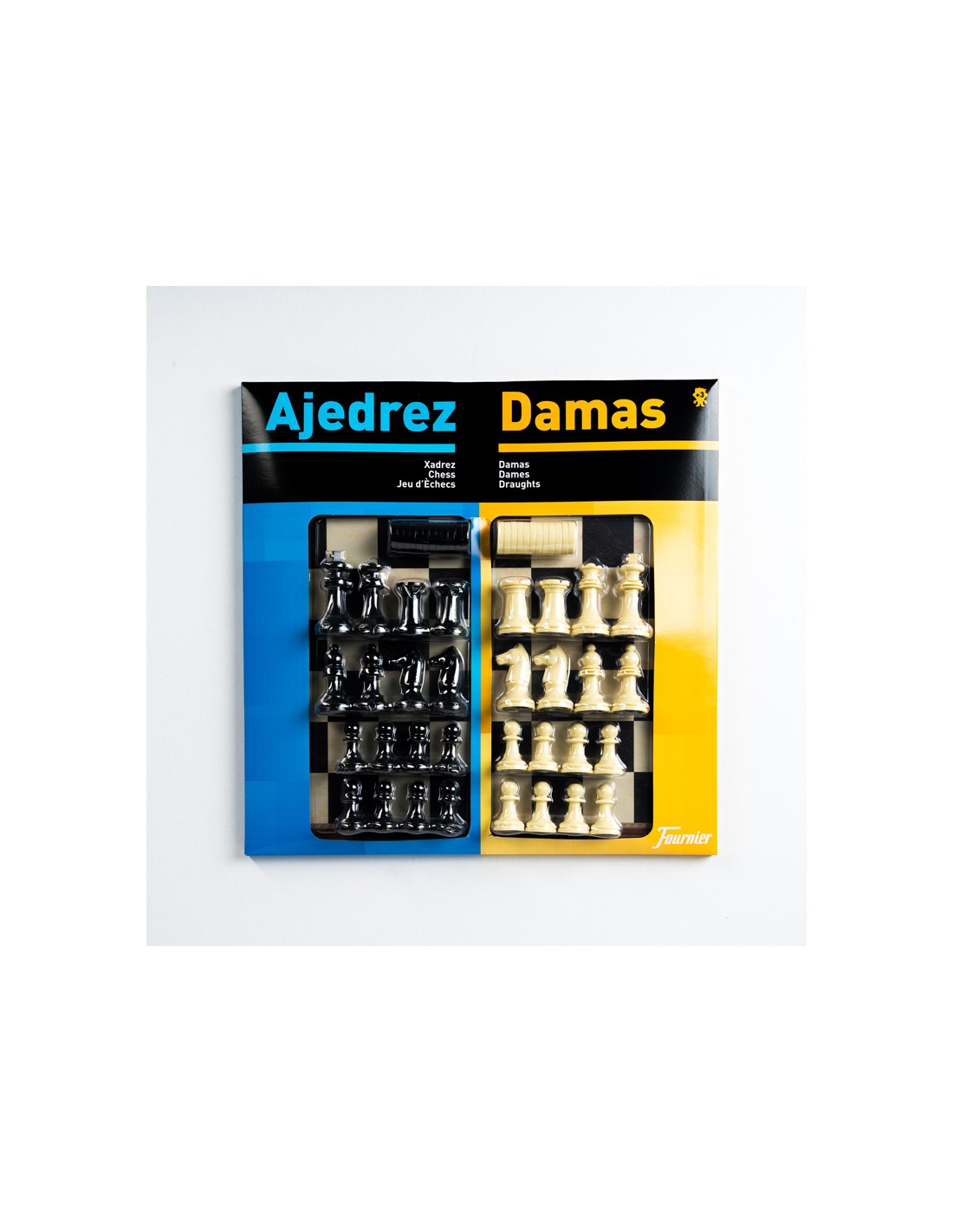 Contiene tablero, fichas de ajedrez, fichas de damas. Medidas 400 x 400 mm.