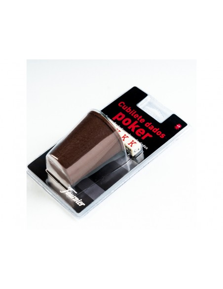 Cubilete plástico + dados póker. Presentado en blister.