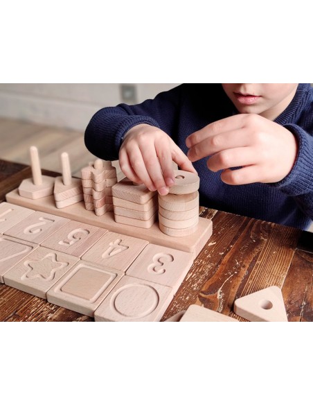Material pedagógico inclusivo, ideal para el desarrollo de la percepción táctil, el reconocimiento de las formas y el razonamiento lógico. Incluye atributos de numeración, de formas geométricas y de grabados sensoriales, los cuales utilizaremos como guía para realizar los ejercicios. La libre disposición de los atributos, permite infinidad de combinaciones de juego. De 2 a 99 años.