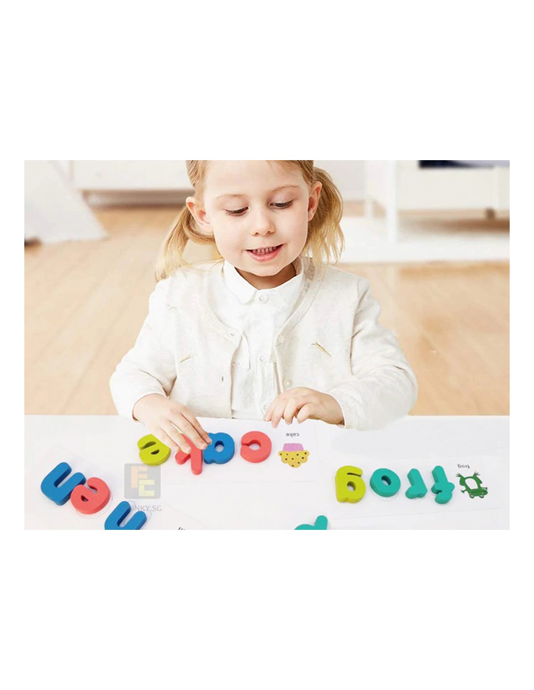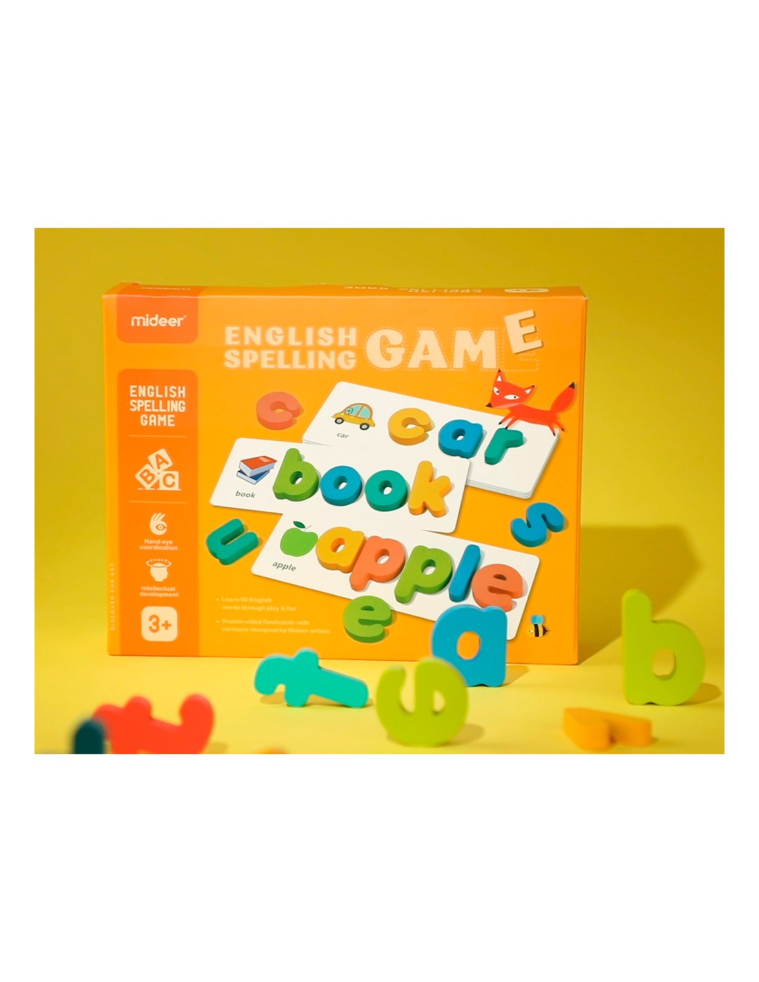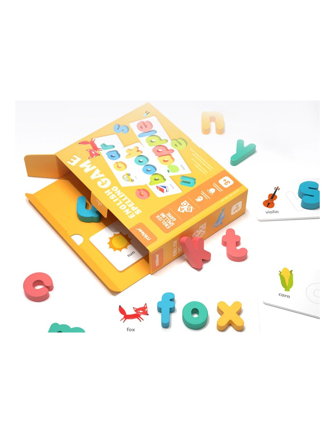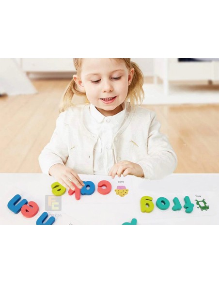 Empareja las letras con las plantillas. Para que los niños se familiariceny aprendan la ortografía en inglés. 26 x 2 letras de madera más 80 palabr as en inglés.