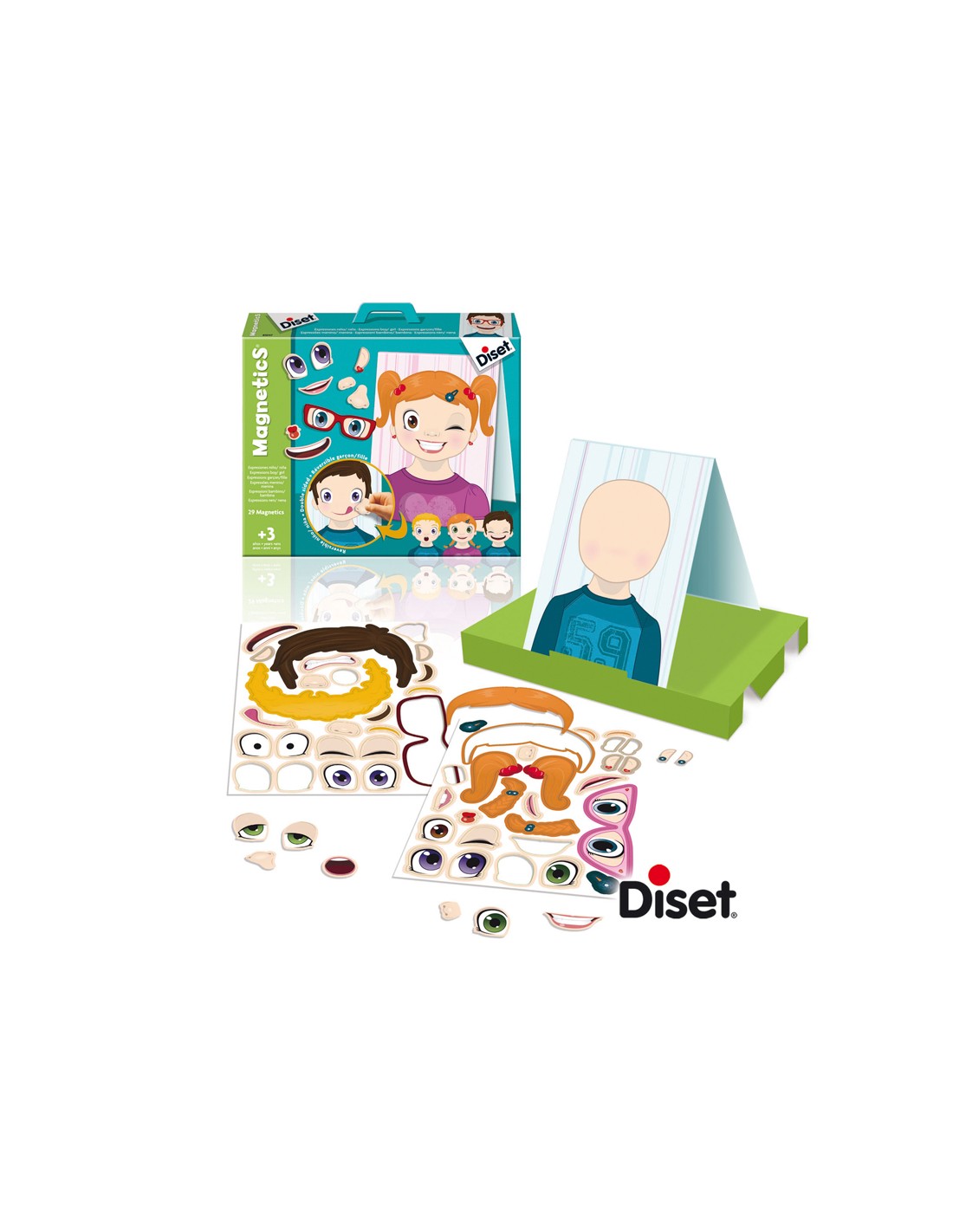 Juego magnético educativo para niños y niñas. Consiste en combinar las diferentes piezas magnéticas para hacer diferentes caras y expresiones. Los niños aprenden a que coincidan las diferentes partes de la cara y ponerlas en el lugar correcto, así como los diferentes estados de ánimo. A partir de 3 años. Medidas 33,2 x 26,2 x 5,2 cm.