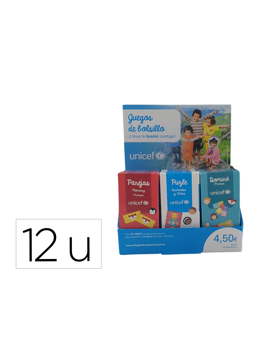 Juego educativo de bolsillo unicef expositor de 12 unidades surtidas