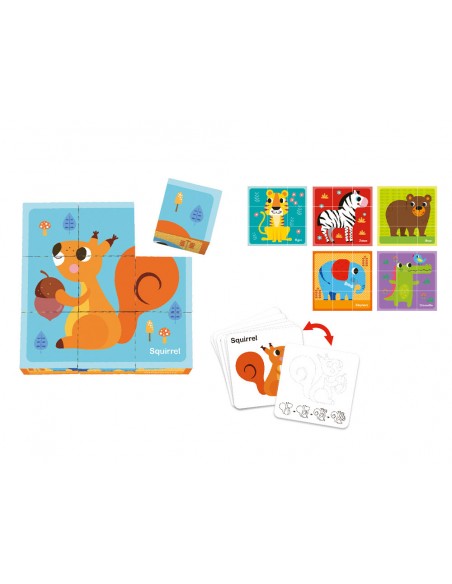Puzle infantil imaginovo madera cubos de animales +24 meses 15 piezas incluye 12 patrones 22x22x6,4cm