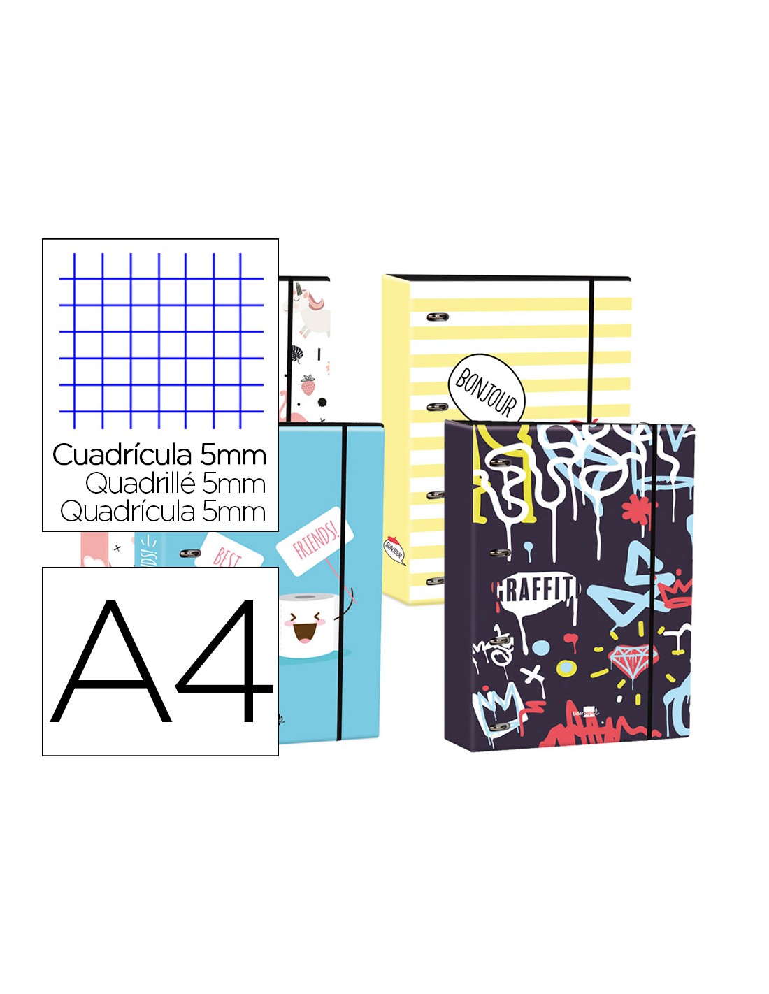 Carpeta liderpapel din a4 forrada con recambio 120 hojas 80 gr 5 mm 4 an. redondas 40 mm cierre goma