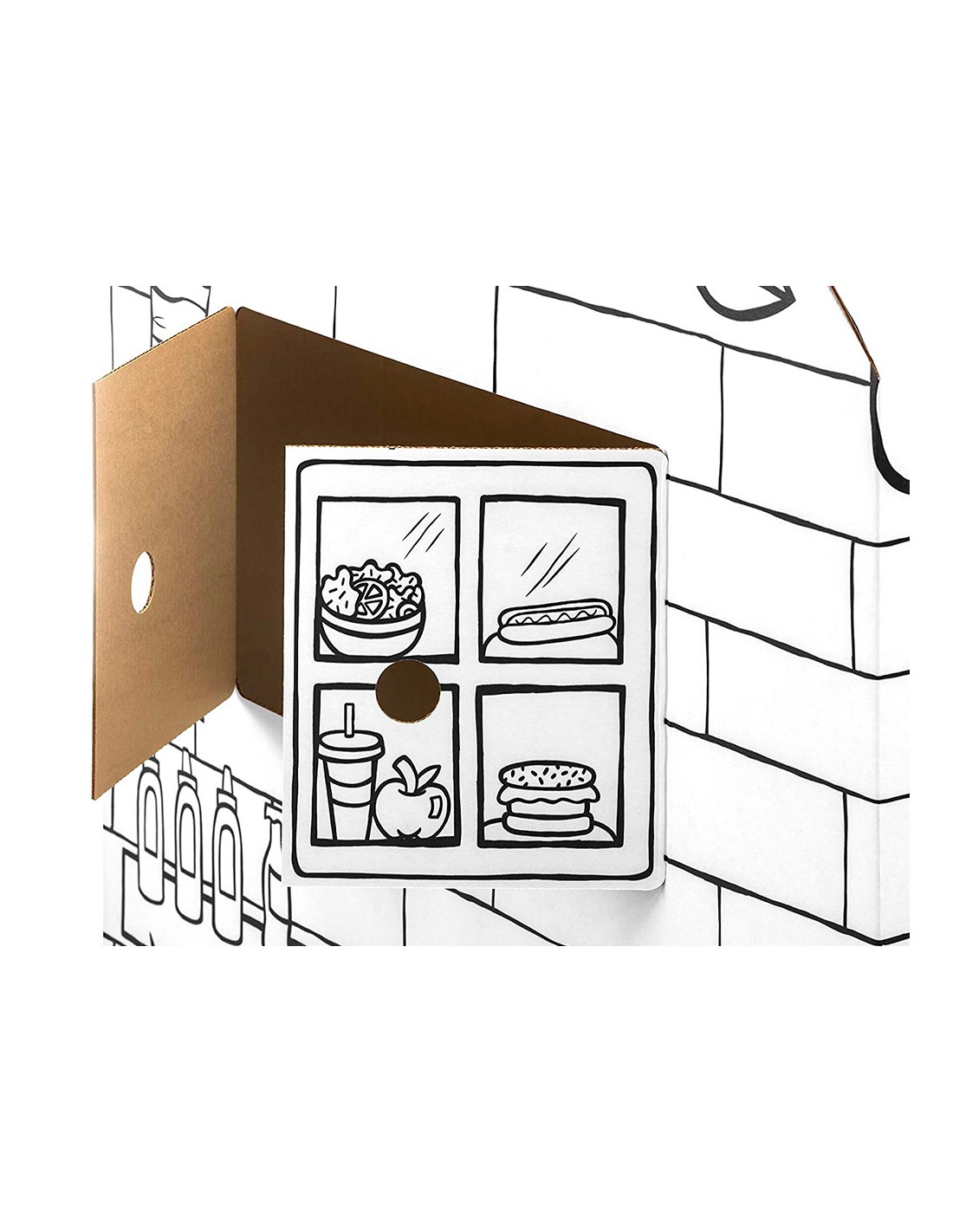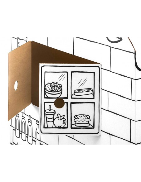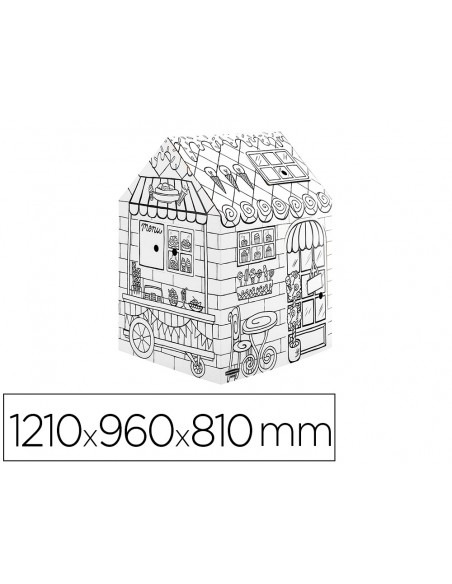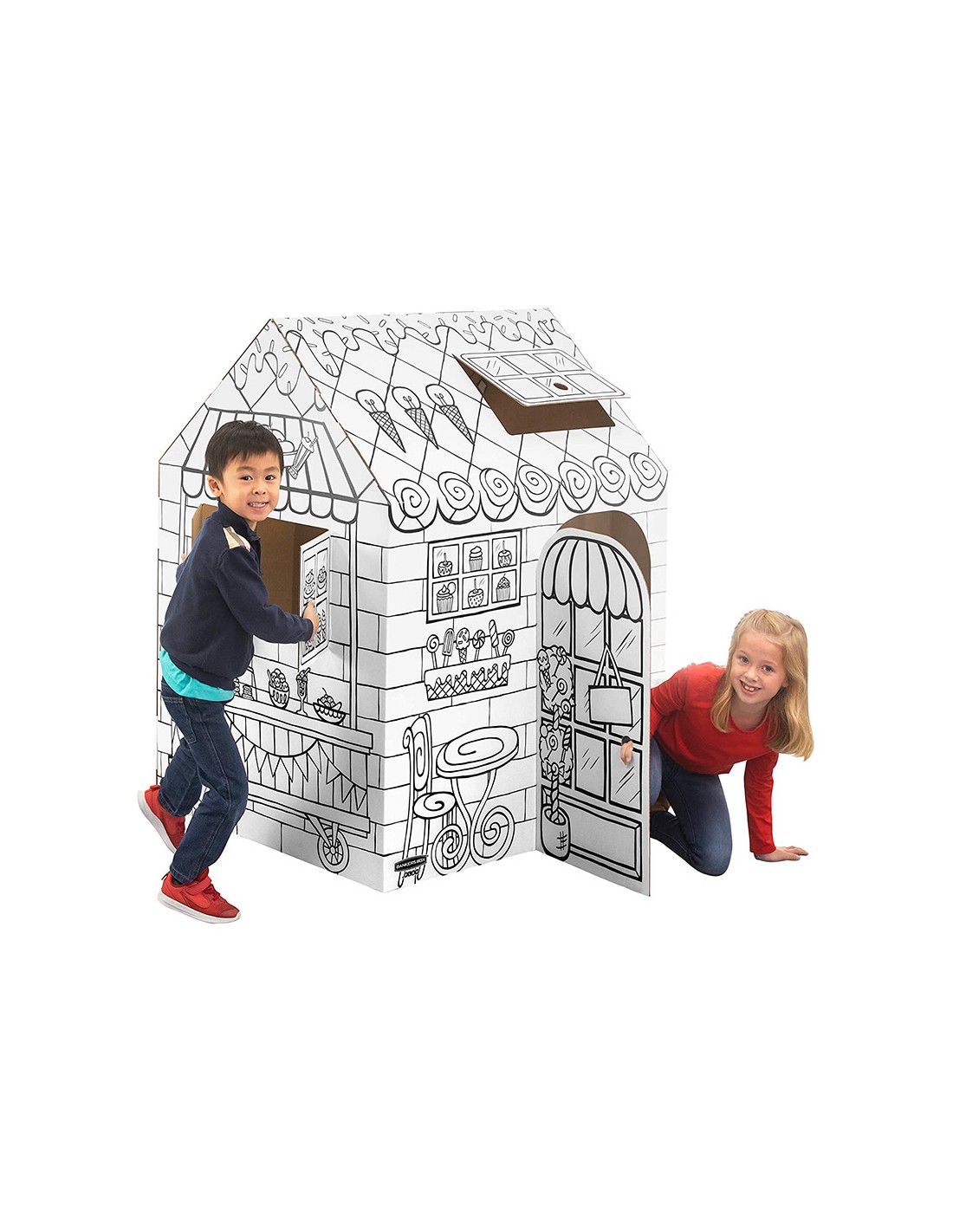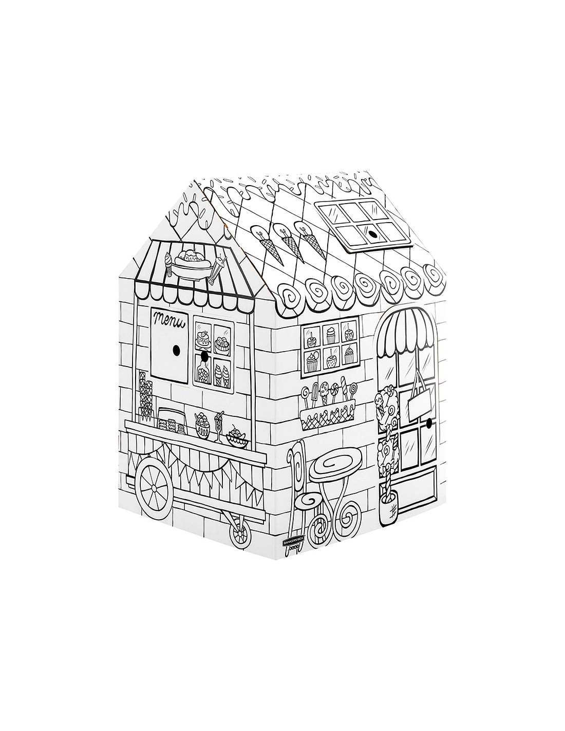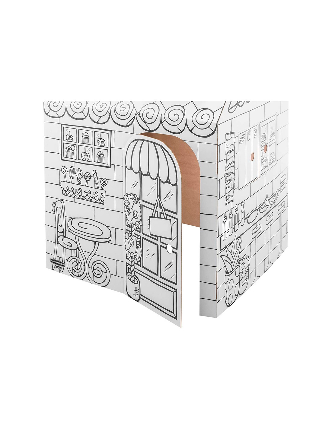 Esta gran casa de juegos para colorear ayuda a fomentar la interacción infantil, el juego imaginativo y colaborativo. Horas de juego para niños, ya que está hecho de cartón corrugado resistente y duradero con bordes redondeados. Rápido de montar, sin necesidad de adhesivos, gracias al ingenioso diseño de 2 piezas. Diseño interactivo y divertido, puedes abrir y cerrar puertas y ventanas. Deje que su hijo exprese su creatividad coloreando el diseño preimpreso (rotuladores/pinturas no incluidos).La casa de juegos, de origen responsable, está hecha de cartón certificado FSC, impresa con tinta no tóxica y se puede reciclar por completo. Medidas completamente ensambladas 121 x 97 x 81 cm.