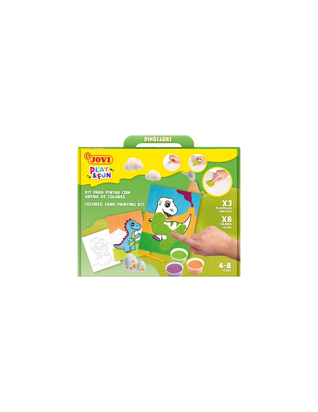 Juego jovi play&fun pinta con arena de colores dinosaurios