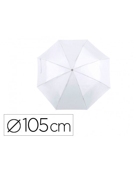 Paraguas de poliester blanco 105 cm de diametro mango suave de madera apertura manual cierre con velcro