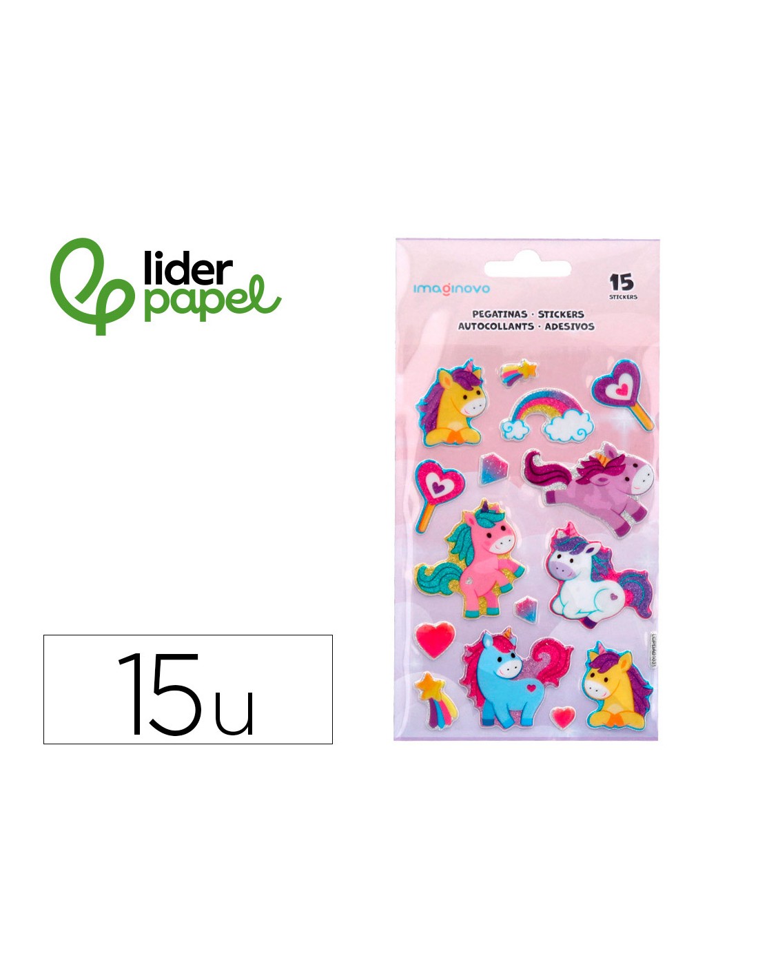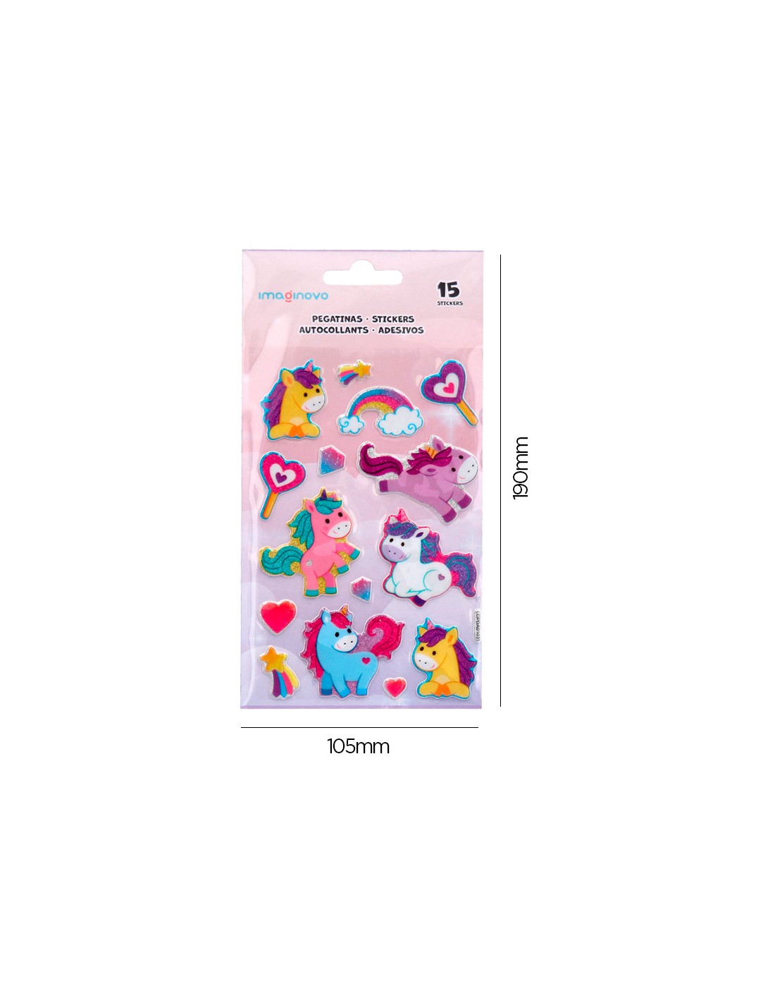 Pegatinas imaginovo unicornios magic dreams con brillo 190x105 mm en blister