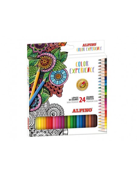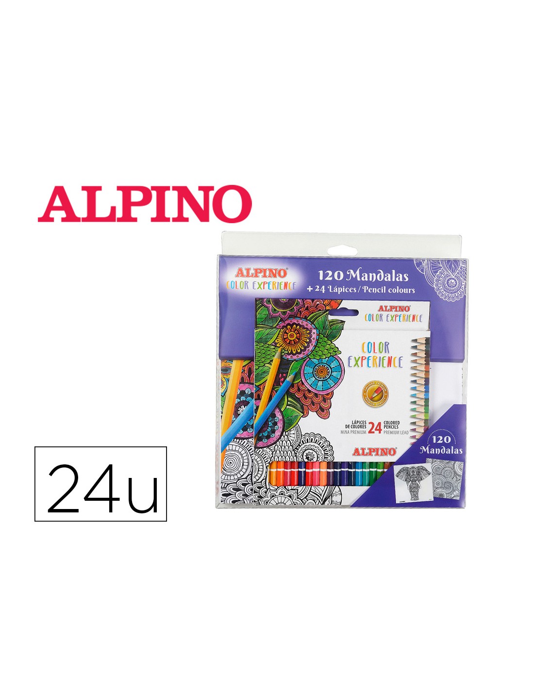 ESTUCHE DE 24 LAPICES COLOR EXPERIENCE DE ALTA CALIDAD GARANTIZADA POR LA MARCA ALPINO DISEÑO FUNCIONAL REGALO DE UN LIBRO PARA DIBUJAR 120 MANDALAS