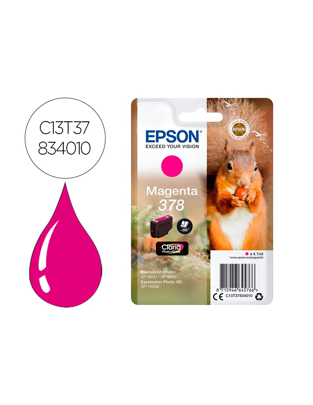Ink-jet epson 378 expression home xp-8605 / 8606 / xp-15000 / xp-8500 / 8505 magenta 360 pag
