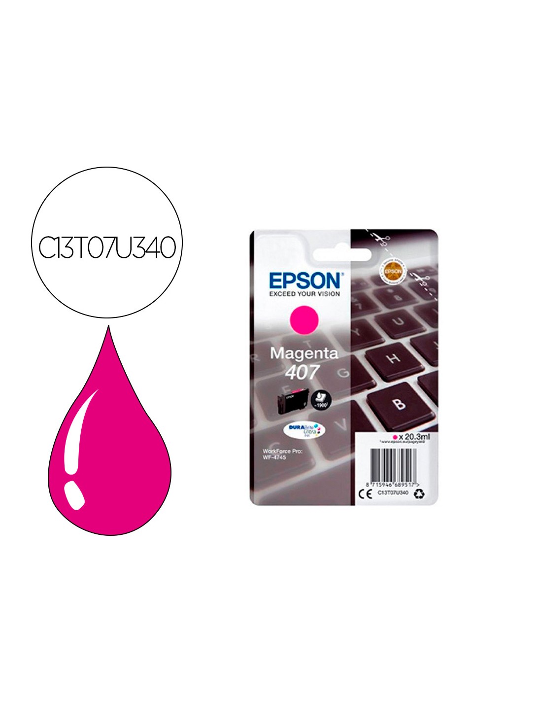 Ink-jet epson 407l clavier wf-4745 series magenta 1900 paginas