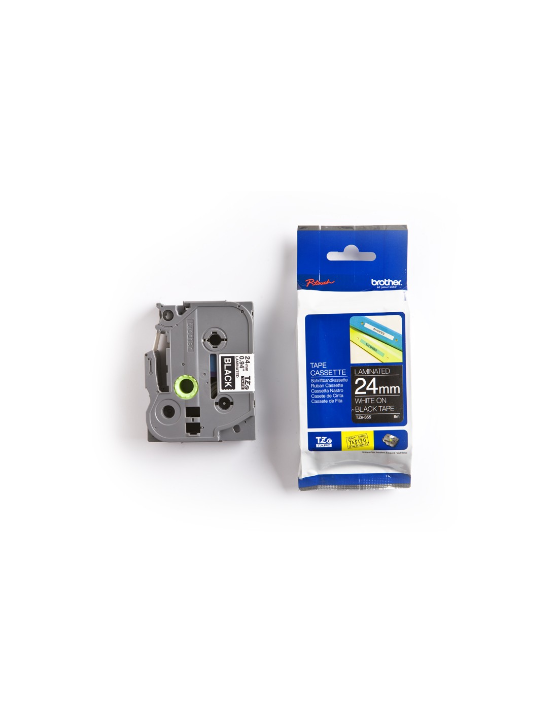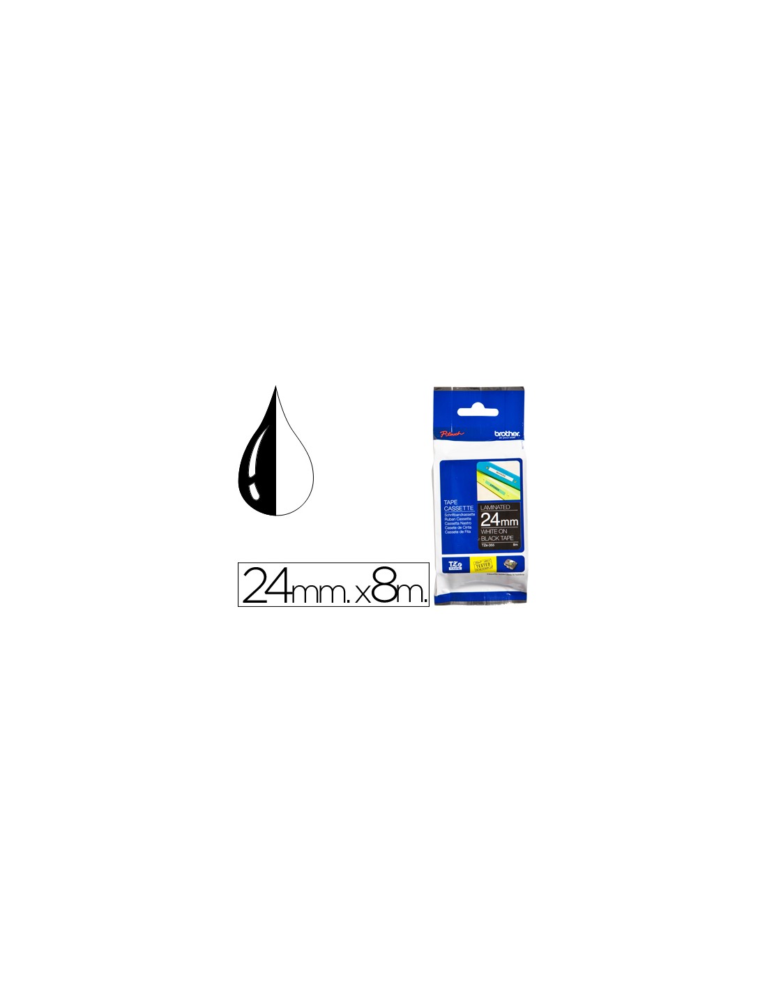 Cinta brother tze-355 negro-blanco 24mm longitud 8mt