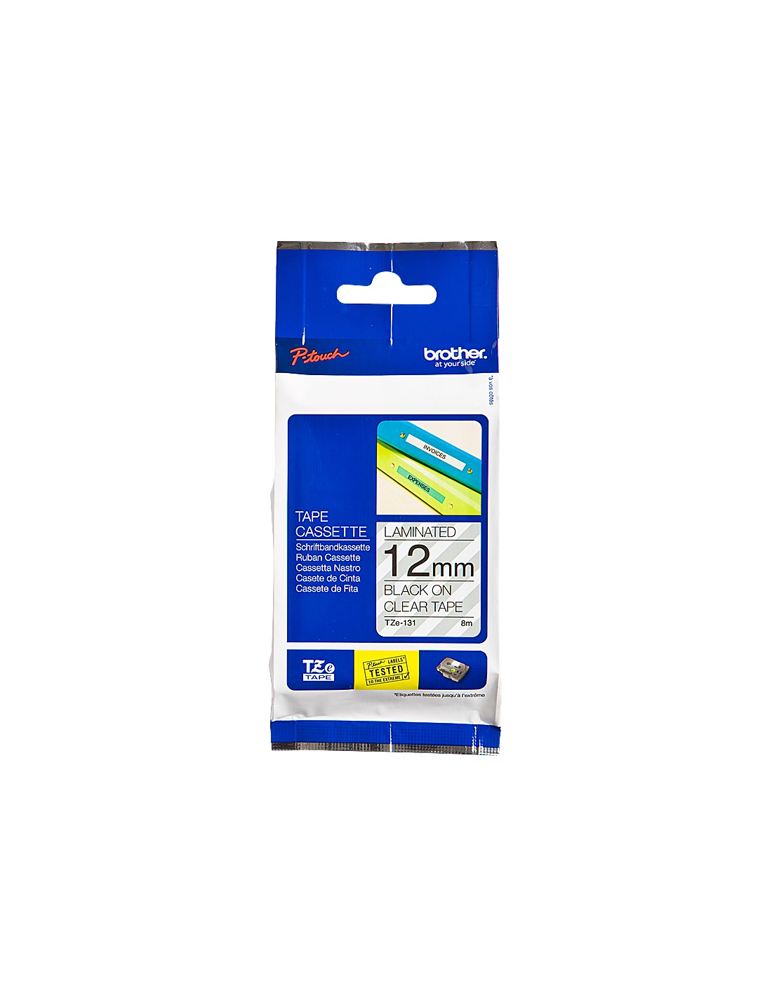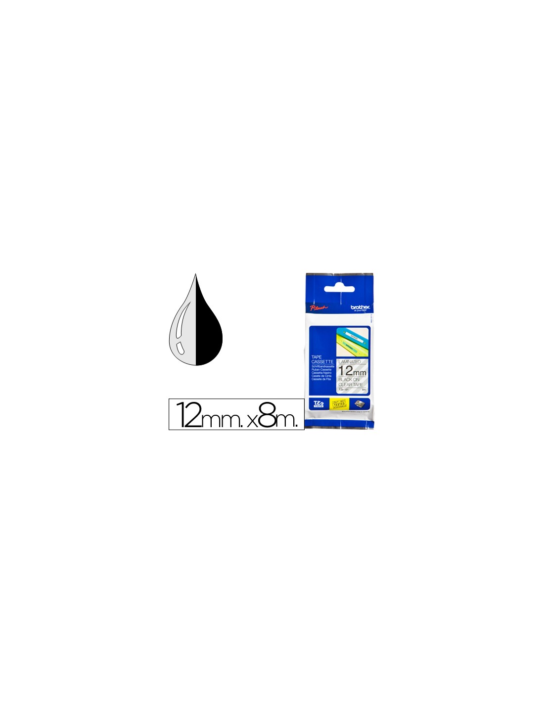 Cinta brother tze131 transparente-negro 12mm longitud 8 mt
