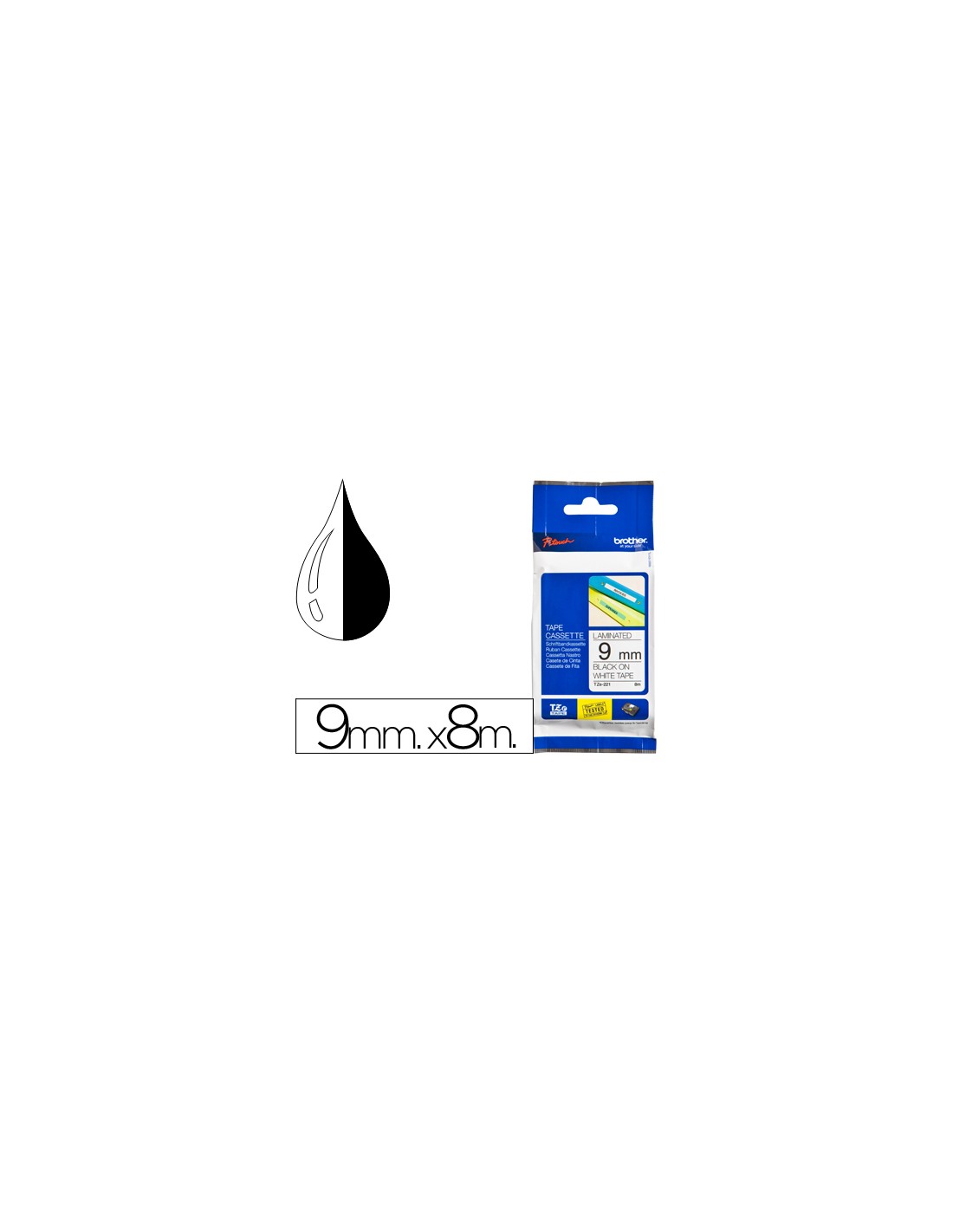 Cinta brother tze221 blanco-negro 9mm longitud 8 mt