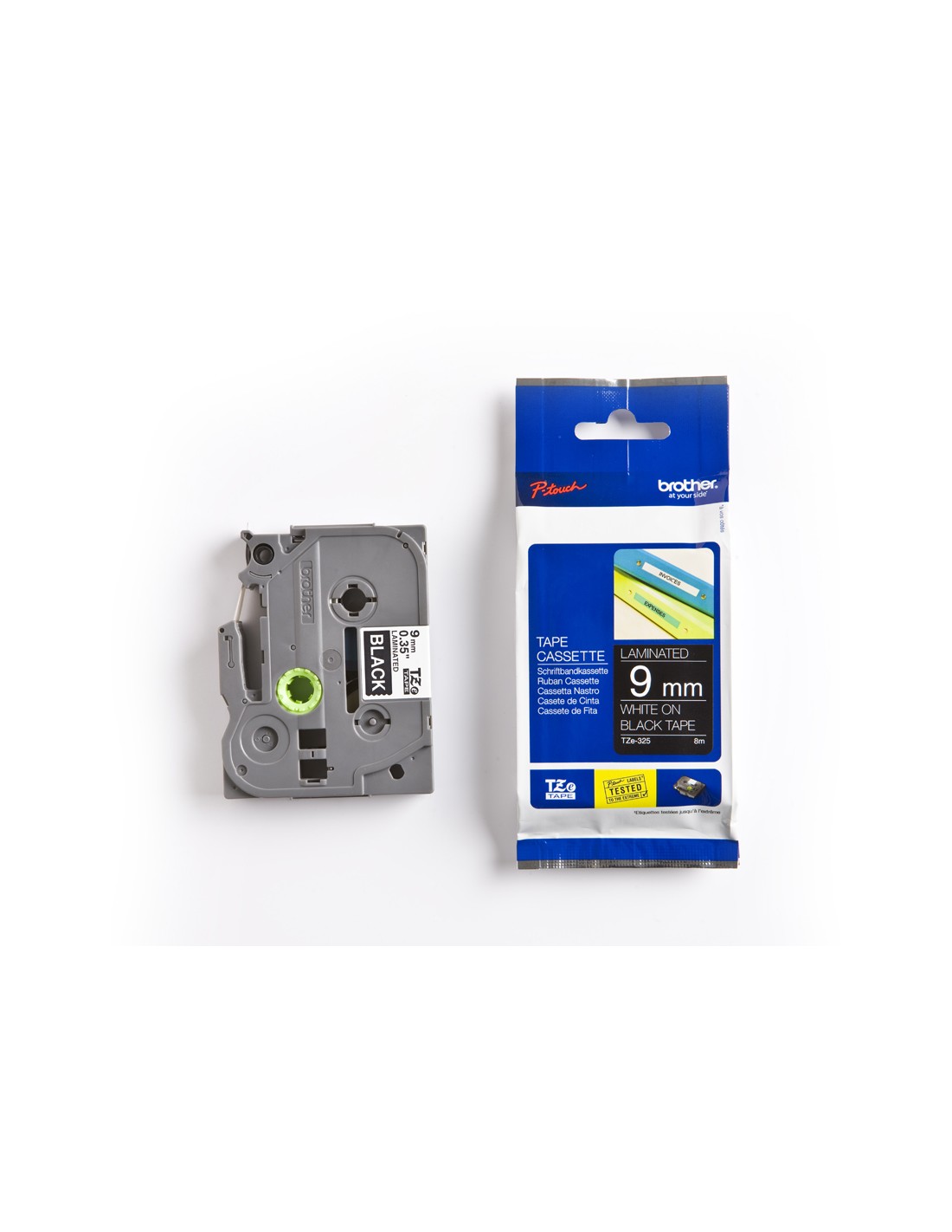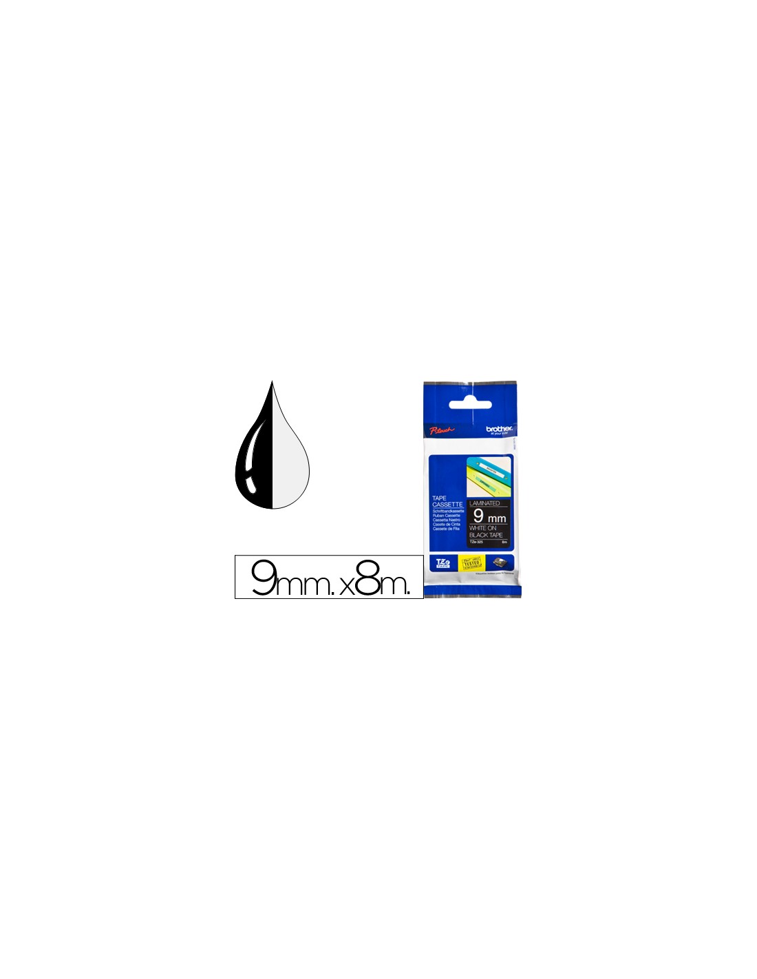 Cinta brother tze325 negro-blanco 9mm longitud 8mt