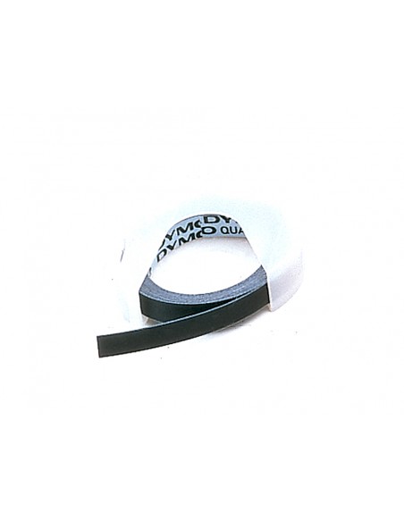 Etiquetas de estampación de relieve de plástico DYMO 3D. Se adhieren a cualquier tipo de superficie lisa y limpia, además de ser resistente al agua, a la corrosión, a la abrasión y a la mayoría de sustancias químicas, tanto si las utiliza en interiores como en exteriores. Material poliéster. Medidas 9 mm x 3 m.