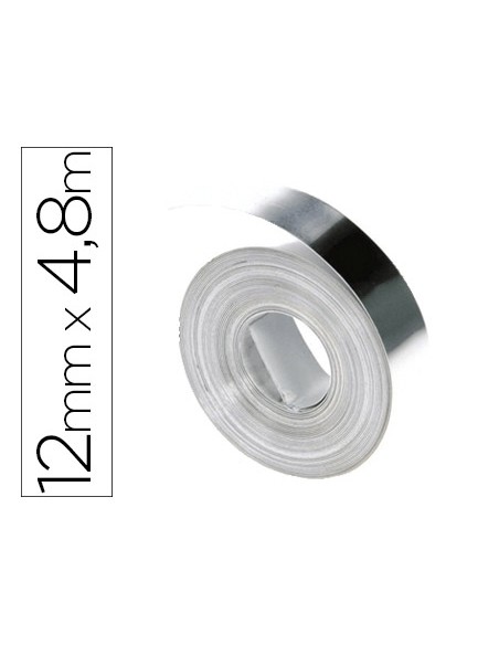 Cinta dymo aluminio 12mm x 4,8mt sin adhesivo para rotuladora