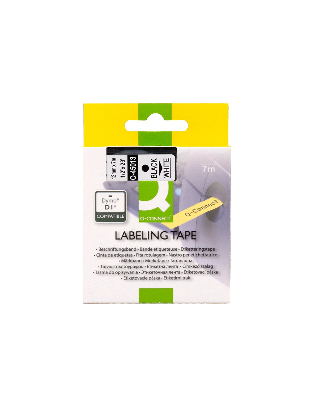 Cinta q-connect 1000 negro-blanco 12mm x 7mt dymo