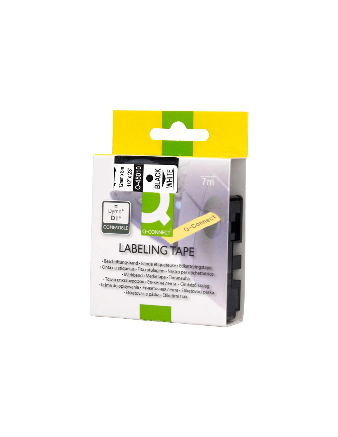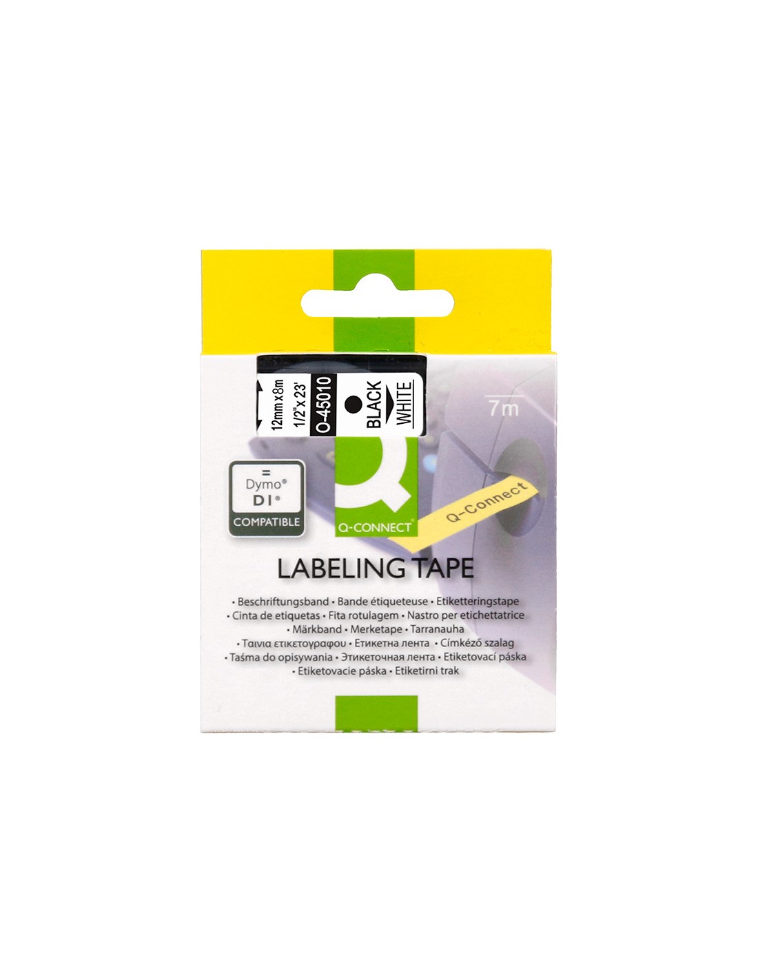 Cinta q-connect mk-221 blanco-negro 9mm longitud 8 mt