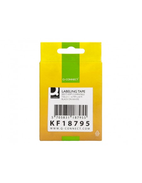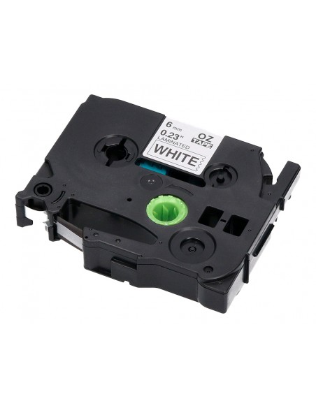 Cinta q-connect tze-211 blanco-negro 6mm longitud 8 mt
