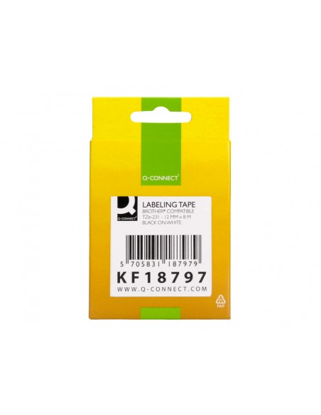 Cinta q-connect tze-231 blanco-negro 12mm longitud 8 mt