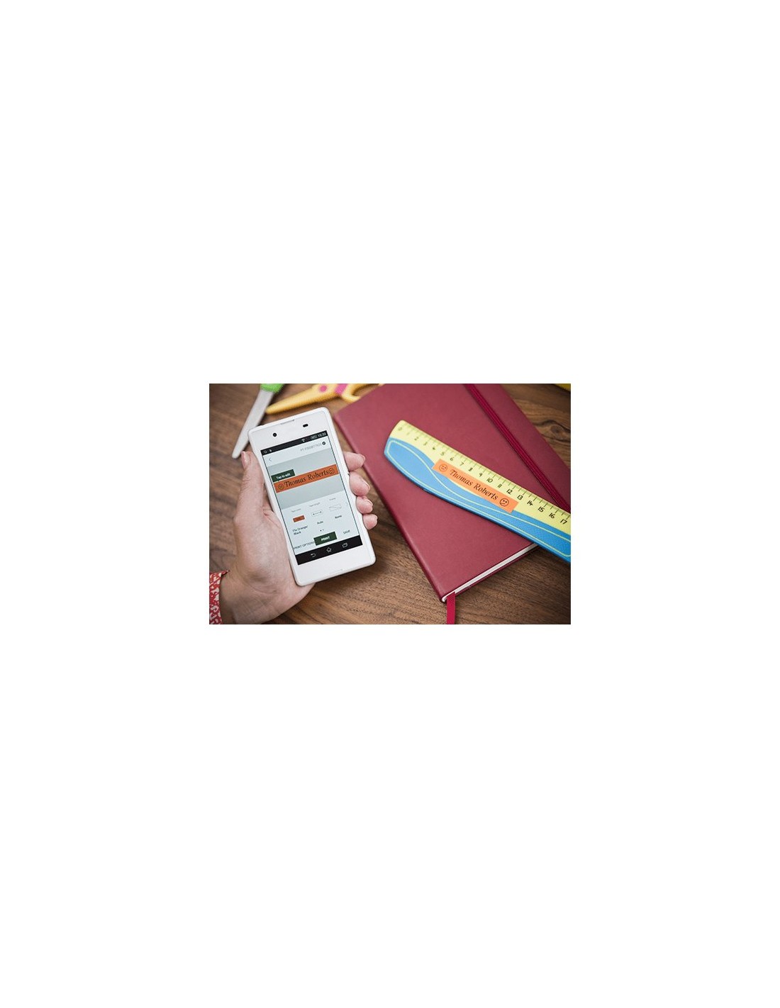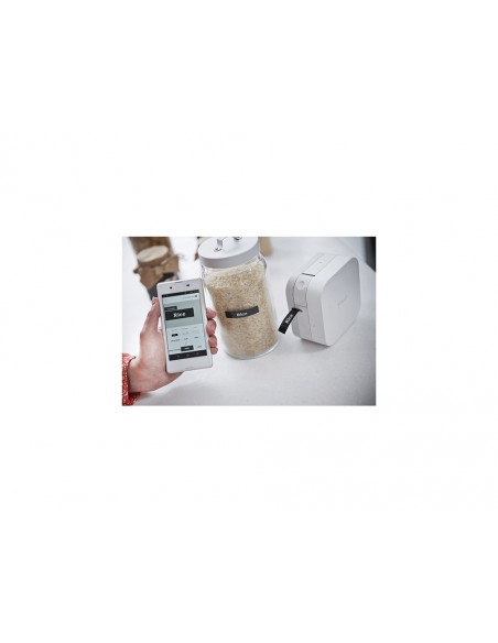 Rotuladora electrónica portátil con conexión Bluetooth. Anchos de cinta 3,5 / 6 / 9 / 12 mm. Corte de cinta automático.Pilas AAA y adaptador AC opcional. Bluetooth. Color blanco.
