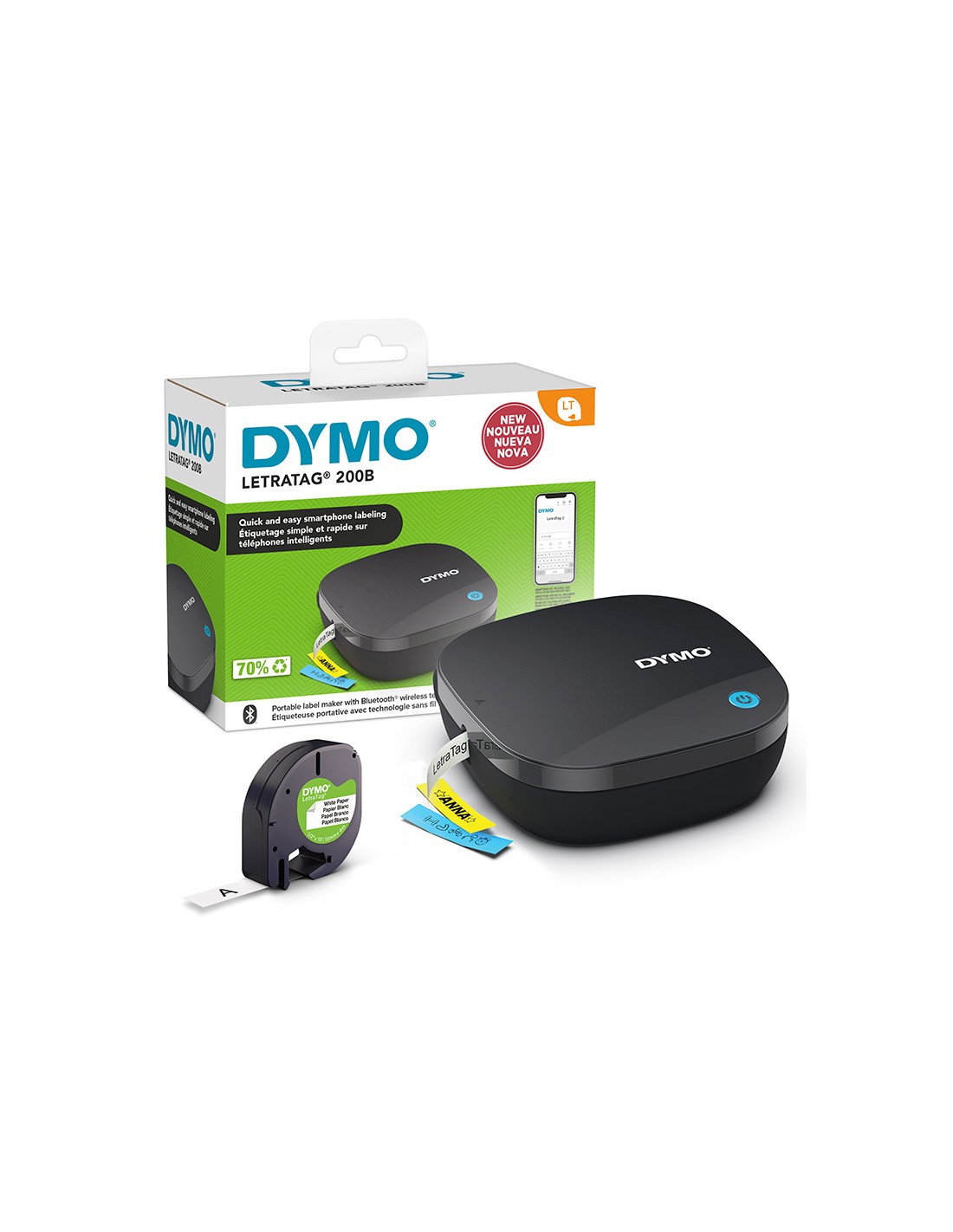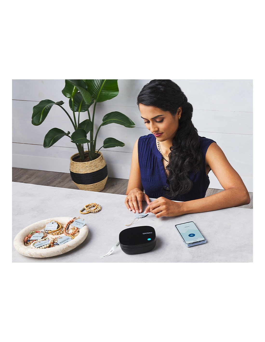 Nueva etiquetadora que se conecta automáticamente al Bluetooth de Smartphone o tableta. Perfecta para organización y orden en casa, etiquetar prendas, manualidades, creatividad y mucho más. Tamaño compacto para llevarla a cualquier parte e imprimir fácilmente en casa, en el trabajo o cuando se viaja. Tecnología de impresión térmica directa, no se necesitan cartuchos de tinta. Funciona con 4 pilas AA (no incluidas) e incluye una cinta Letratag de papel, negro sobre blanco. Cintas disponibles en diferentes colores, en papel, plástico, metálico y termoadhesivo. Las etiquetas de papel DYMO cuentan con la certificación FSC. El Cassette externo está fabricado con materiales 100 % reciclados. Medidas 98,4 x 190,5 x 188,9 mm. Peso 471,74 g.