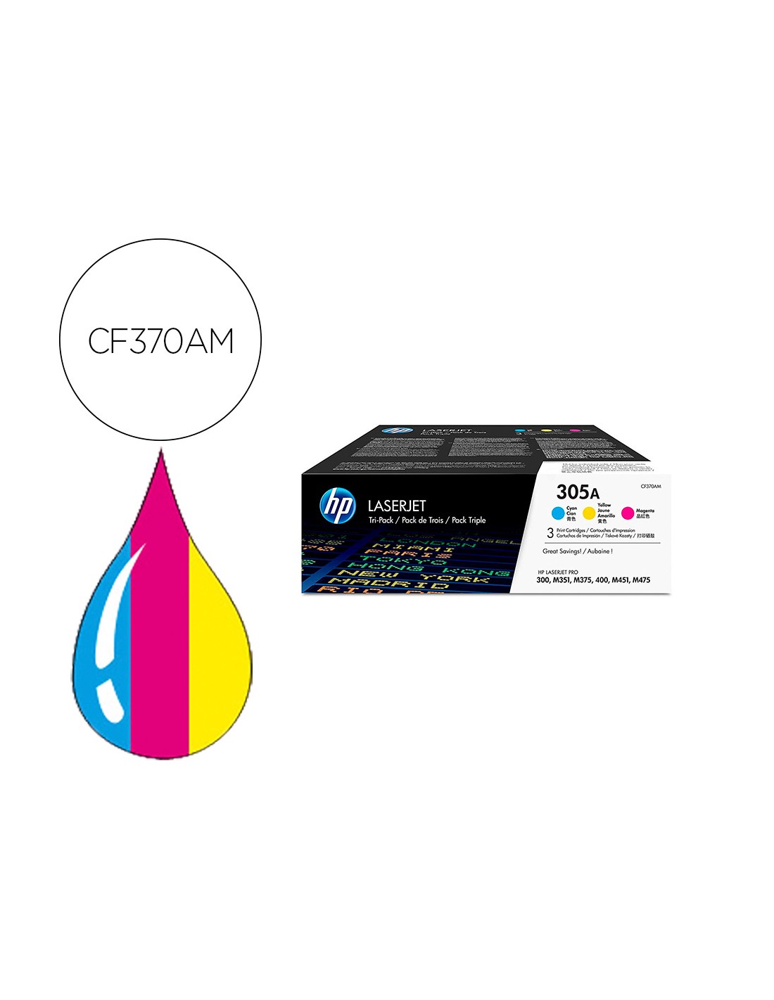 Toner hp 305a laserjet pro 300 / m351 / 400 / m451 / mfp m375 / mfp m475 pack color amarillo cian magenta 2600