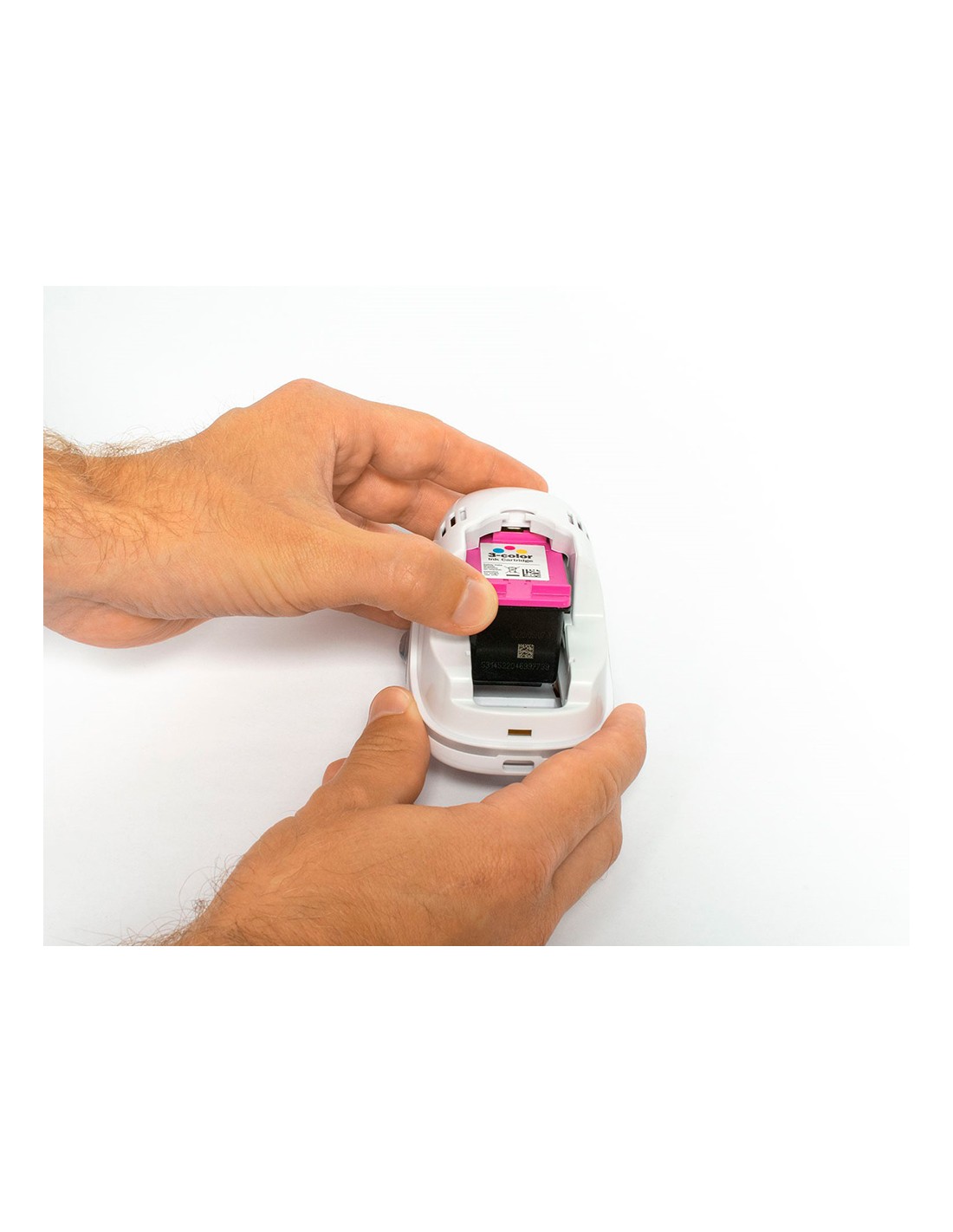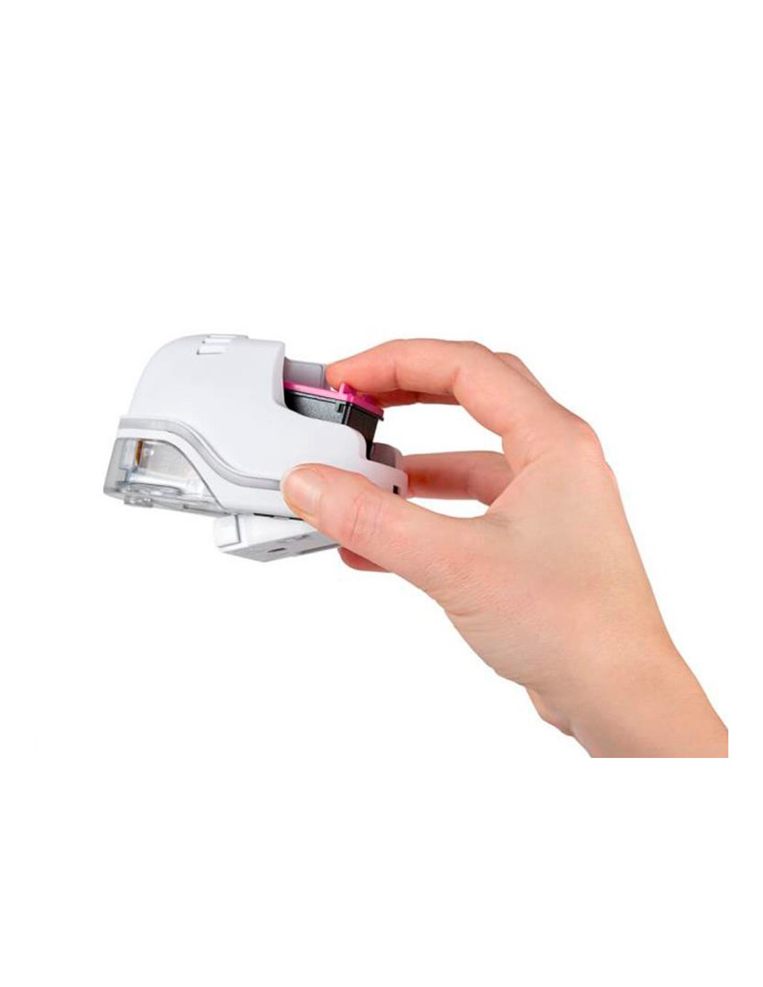 El cartucho E-Mark de tinta tricolor (amarillo, cian y magenta) permite la impresión a todo color en casi todas las superficies absorbentes. Calidad de impresión 600 ppp. Tipo C2. Hasta 5000 impresiones. Ciclos de limpieza automáticos y manuales. Fácilmente reemplazable en pocos pasos.
