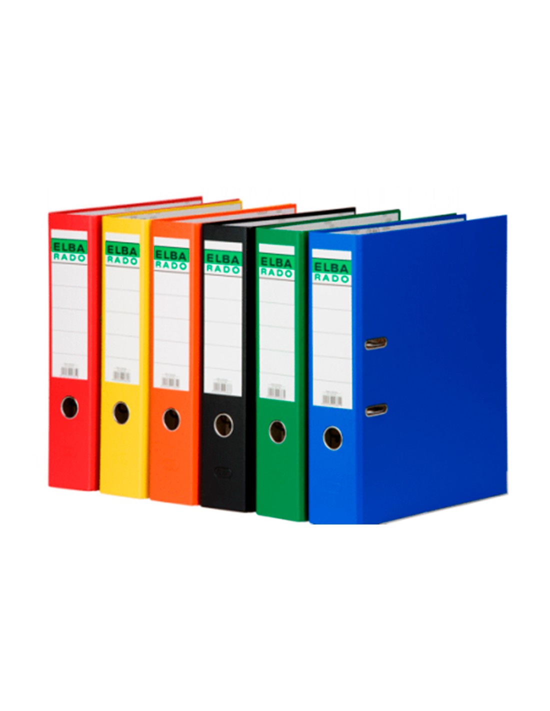 Archivador forrado en plástico de gran resistencia. Etiqueta fija en el lomo, 2 anillas de 75 mm. Con mecanismo de palanca, compresor metálico, ollao y Rado®. Cantoneras largas.