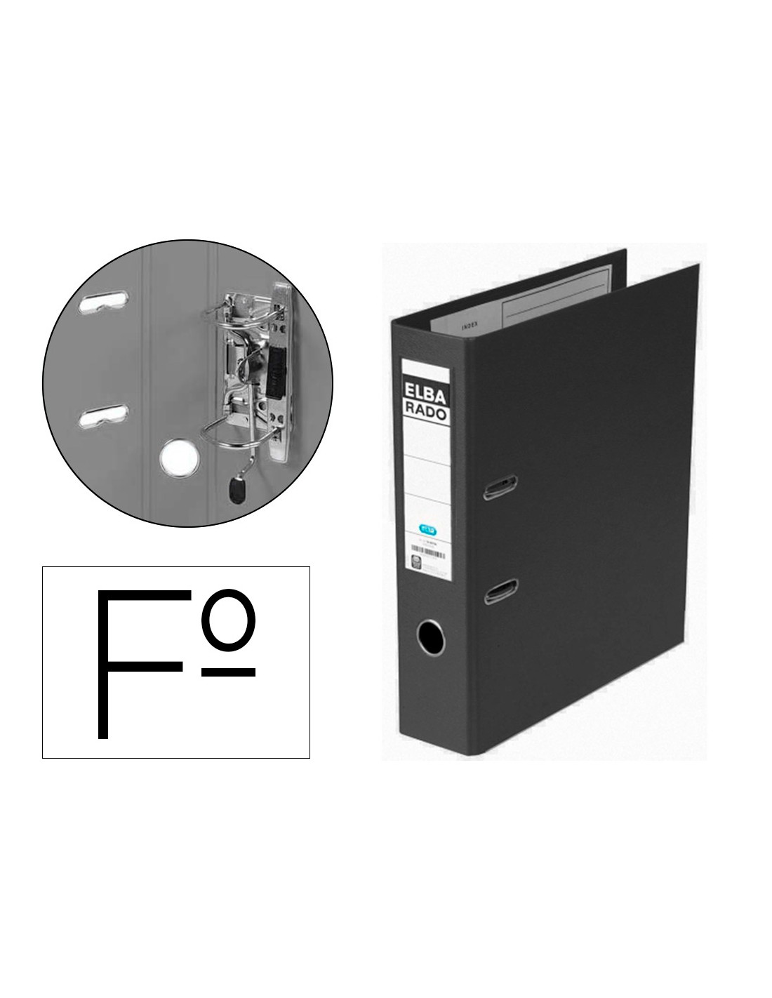 Archivador de palanca elba chic carton forrado pvc con rado folio lomo de 80 mm negro